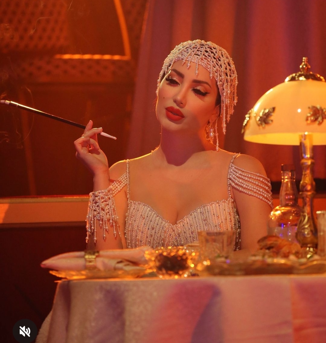 تألقت الفنانة نسرين طافش بفستان كلاسيكي بصيحة الكت مكشوفا من الصدر مطرز باللؤلؤ الرقيق، وارتدت اكسسوارات على الشعر من نفس تصميم الفستان واللؤلؤ، وأثارت الجدل وهي تحمل السيجارة.