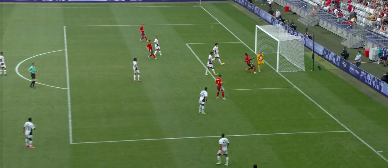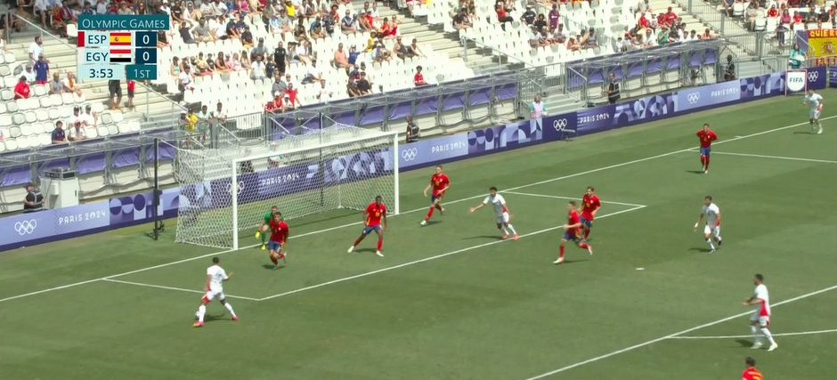 وتراجع أداء المنتخب الأولمبي في الدقائق الأخيرة من المباراة، وهو ما أدى إلى ضغط كبير من المنتخب الإسباني، أسفر عن الهدف الأول، وتقليص الفارق عن طريق المهاجم سامو أوموروديون في الدقيقة 90 من زمن المباراة