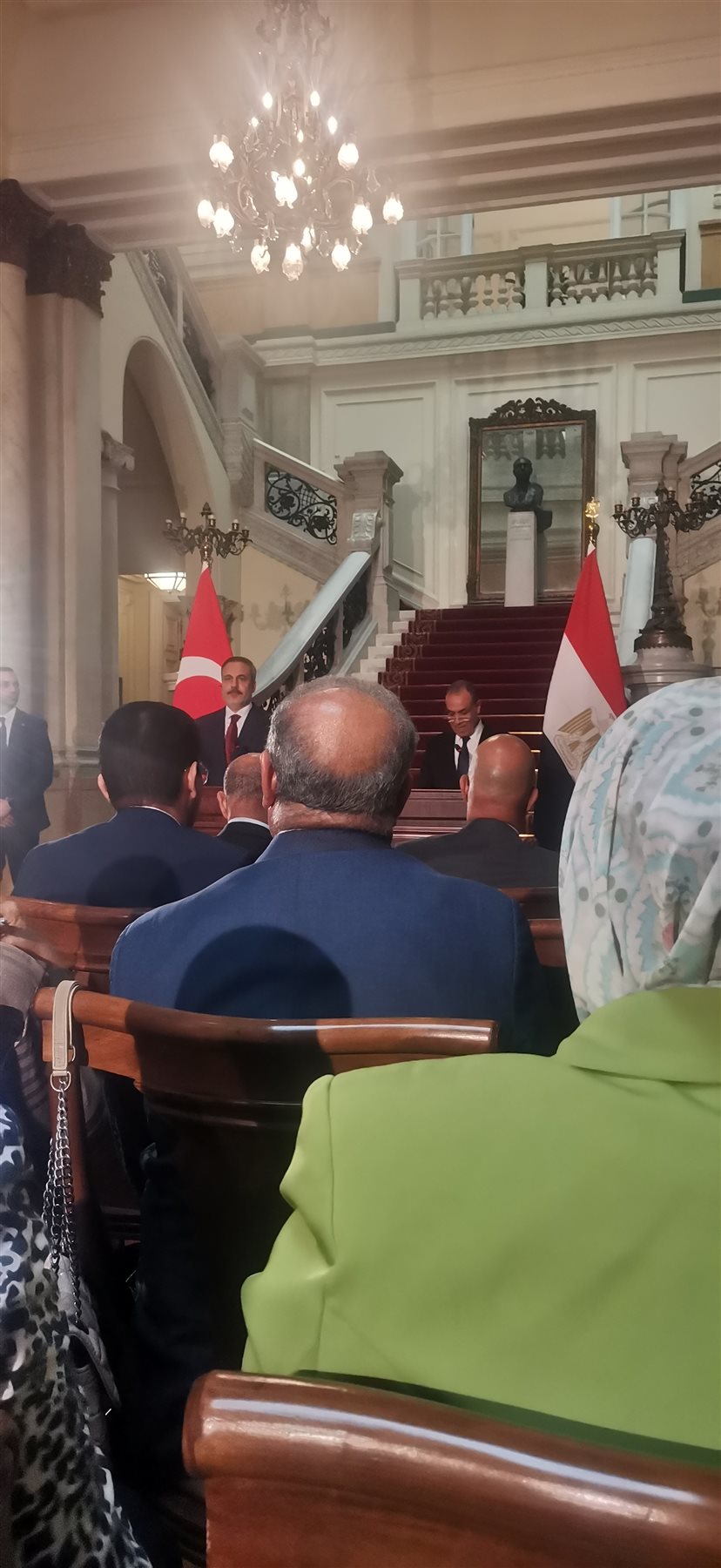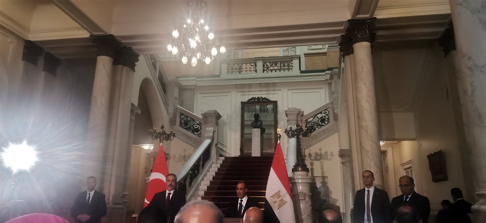 وفي وقت سابق من اليوم، انعقدت جلسة مباحثات موسعة بين وزير الخارجية والهجرة د. بدر عبدالعاطي و هاكان فيدان وزير خارجية تركيا بحضور وفدي البلدين حيث دار نقاش معمق حول مختلف جوانب العلاقات الثنائية وسبل تعزيزها والارتقاء بها، وتنسيق بشأن الوضع في غزة وجهود وقف التصعيد بالمنطقة.