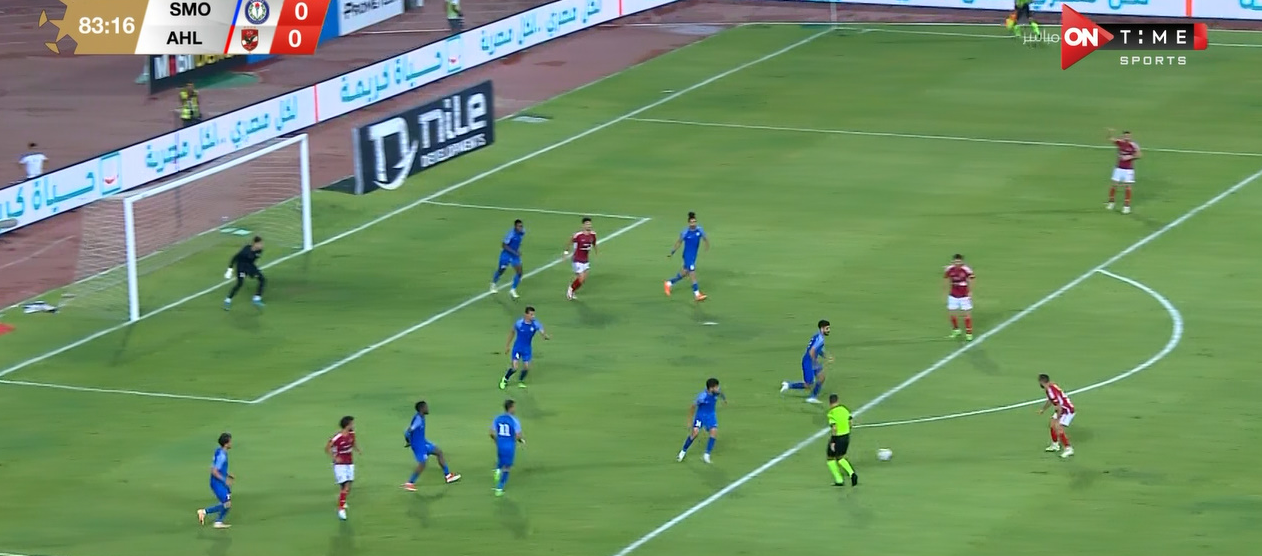 ومن هجمة مرتدة سريعة، كاد نادي سموحة أن يتقدم بالهدف الأول، بعد انفراد ومراوغة الشناوي، ويسدد حسام حسن الكرة في المرمى الخالي، ولكن ياسر إبراهيم ينقذ شباك الأهلي من الهدف الأول.