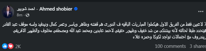 البدء في الترتيب لكافة الأمور المتعلقة بإعداد الفريق للموسم الجديد بالتشاور مع المدير الفني، على أن يتم الحسم بعد الانتهاء من مسابقة الدوري يوم 17 الجاري، وبما يحقق المصلحة الفنية للفريق.