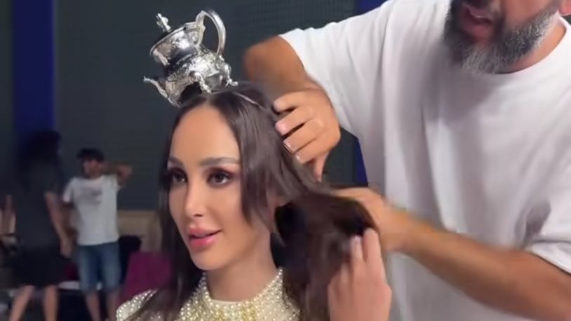 براد شاي على راسها.. إطلالة غريبة لـ بسمة بوسيل من كواليس أغنيتها الجديدة هاد الجبال