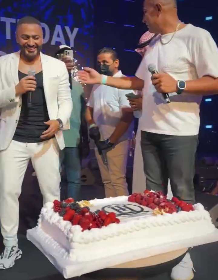 تامر حسني يحتفل بعيد ميلاده وسط جمهوره