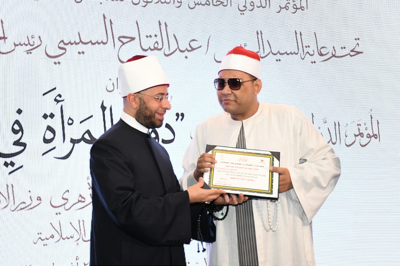 جاء ذلك التكريم أثناء مؤتمر وزارة الأوقاف برئاسة الدكتور أسامة الأزهري، وزير الأوقاف، اليوم الأحد، المؤتمر التحضيري للمؤتمر الدولي الخامس والثلاثين للمجلس الأعلى للشئون الإسلامية بعنوان: "دور المرأة في بناء الوعي"، الذي سيعقد في الفترة من 25 - 26 أغسطس 2024م.