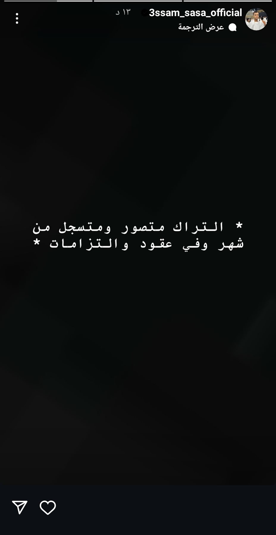 وكتب عصام صاصا في منشوره الذي يرصده موقع تحيا مصر من خلال خاصية استوري: التراك متسجل ومتصور من شهر وفي عقود والتزامات.