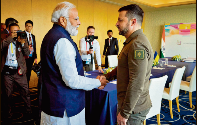 وفي اليوم السابق، ظهرت صورة لمودي وهو يعانق بوتن في مقر إقامته في الريف، مما أثار إدانة من الرئيس الأوكراني فولوديمير زيلينسكي.
