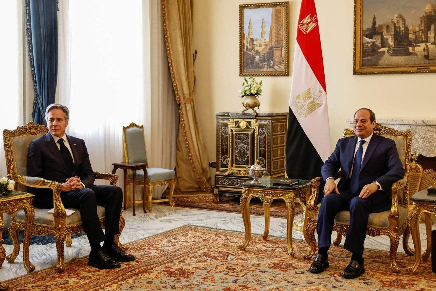 وأضاف المتحدث الرسمي باسم رئاسة الجمهورية أن:" خلال اللقاء تم تبادل الآراء بشأن نتائج الاجتماع التفاوضي الأخير الذي عقد الأسبوع الماضي بالدوحة، وسبل تحريك الموقف وإحراز تقدم في المفاوضات الجارية بالقاهرة، وقد أطلع الوزير بلينكن الرئيس، في هذا السياق، على نتائج زيارته لإسرائيل، مؤكداً التزام الولايات المتحدة بجهود التهدئة والتوصل لاتفاق، ومعرباً عن التقدير الكبير لدور مصر وجهودها البناءة في هذا الصدد".