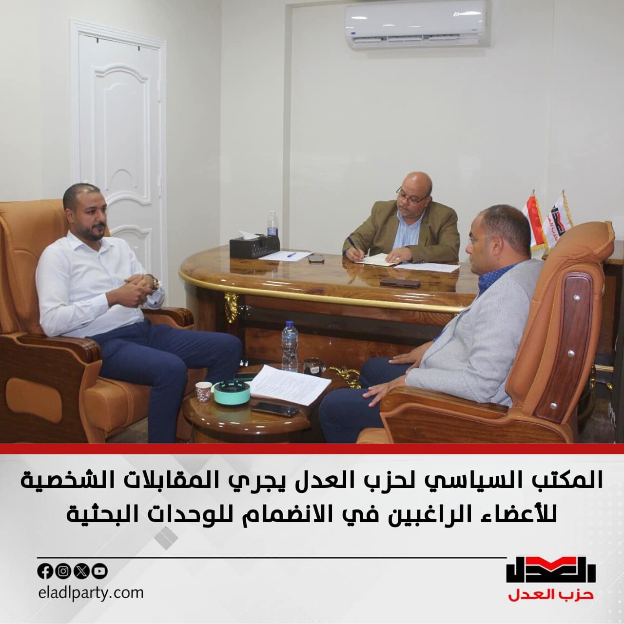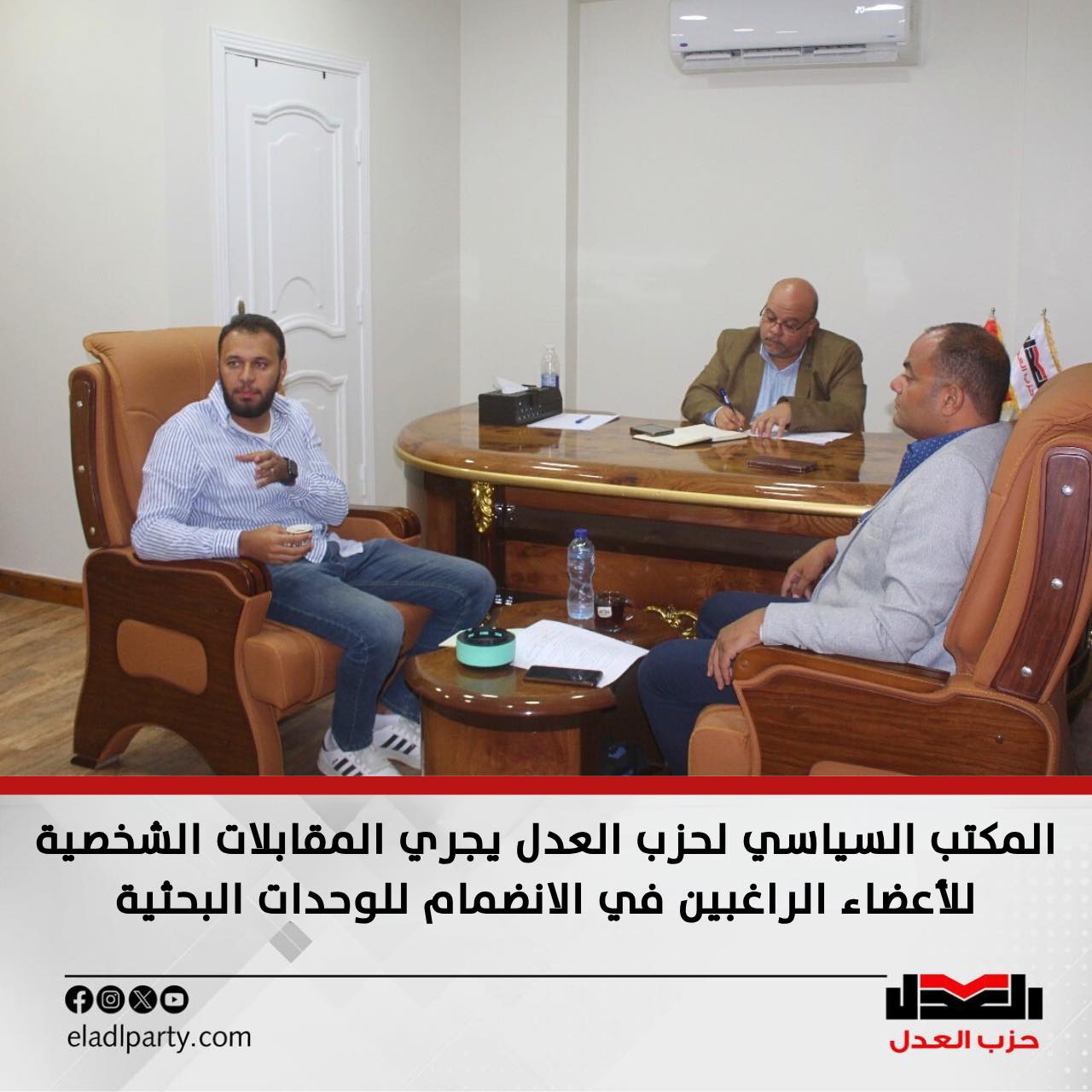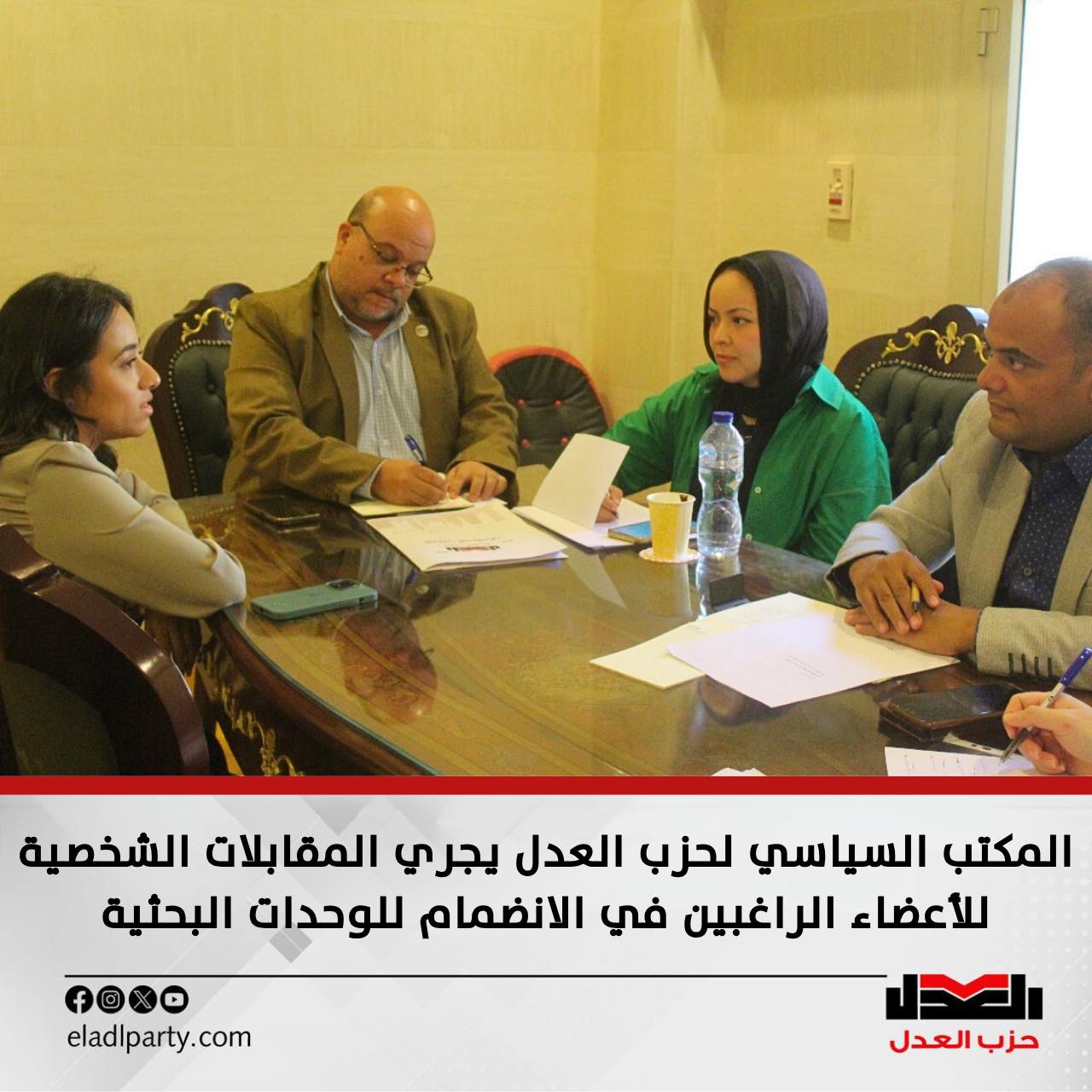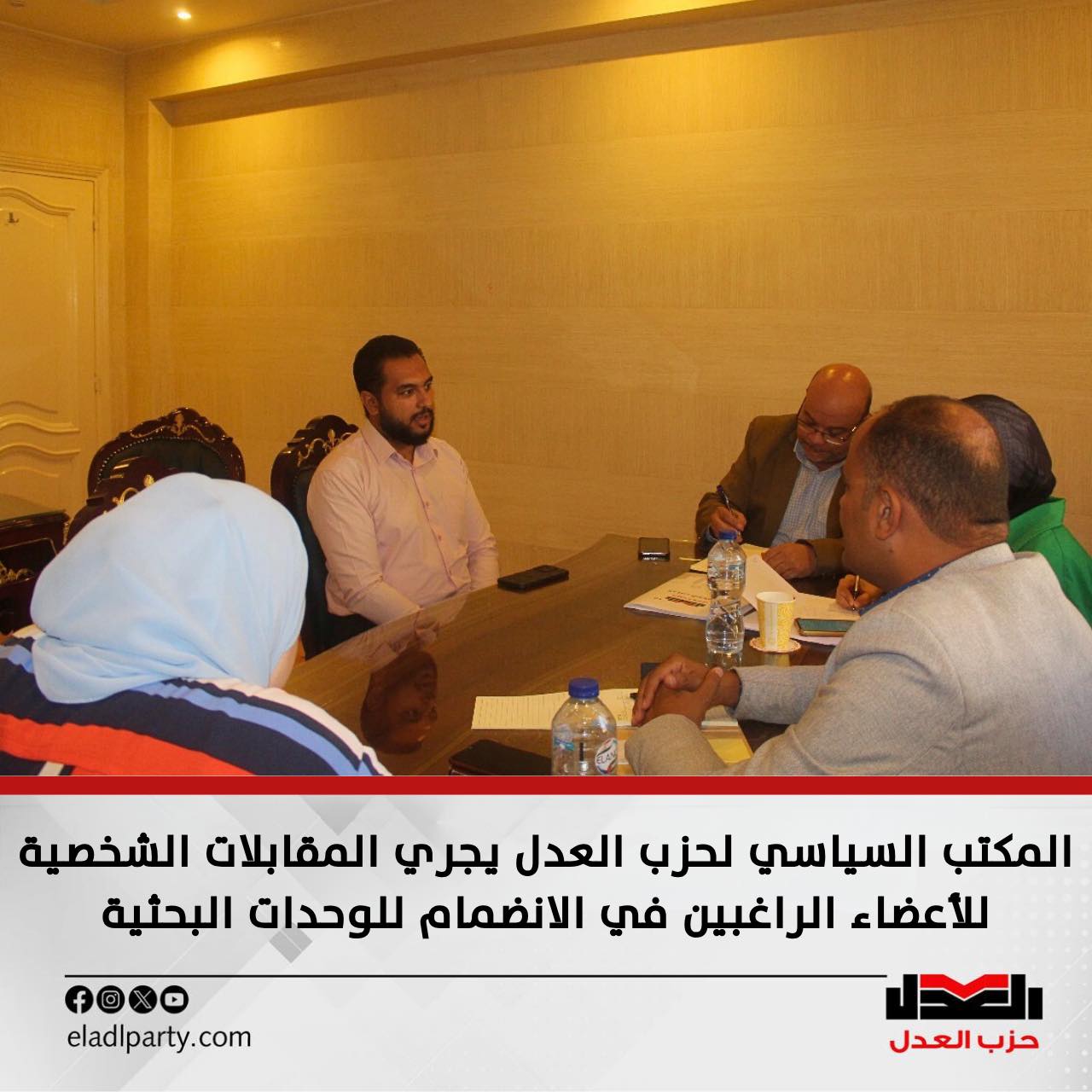 المكتب السياسي لحزب العدل يجري المقابلات الشخصية للأعضاء الراغبين في الانضمام للوحدات البحثية