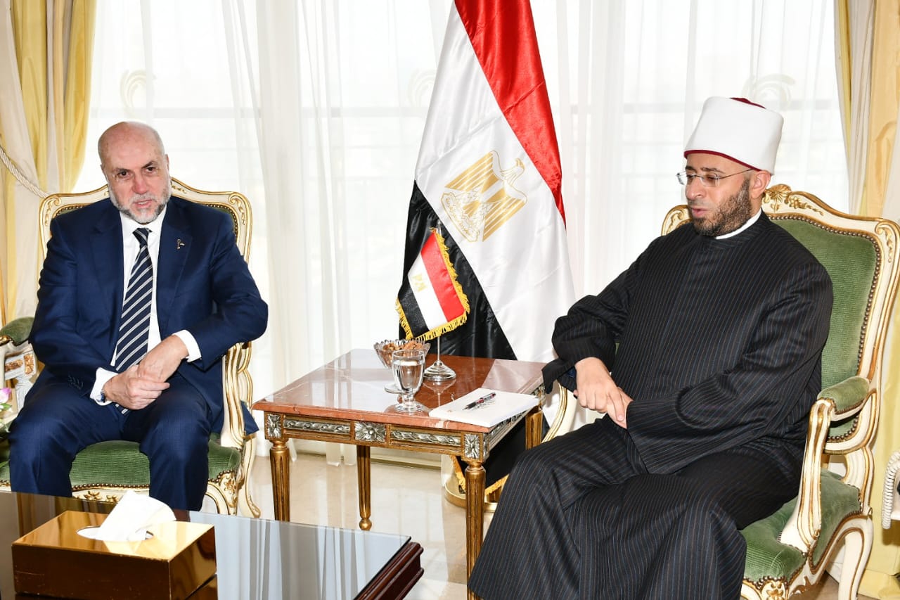 استقبل الدكتور أسامة الأزهري، وزير الأوقاف، الدكتور محمود صدقي الهباش قاضي قضاة فلسطين ومستشار الرئيس الفلسطيني للشئون الدينية والعلاقات الإسلامية على هامش مشاركته في المؤتمر الدولي الخامس والثلاثين للمجلس الأعلى للشئون الإسلامية الذي يُعقد في القاهرة يومي 25 و 26 أغسطس برعاية كريمة وسامية من سيادة الرئيس عبد الفتاح السيسي رئيس الجمهورية تحت عنوان: "دور المرأة في بناء الوعي".