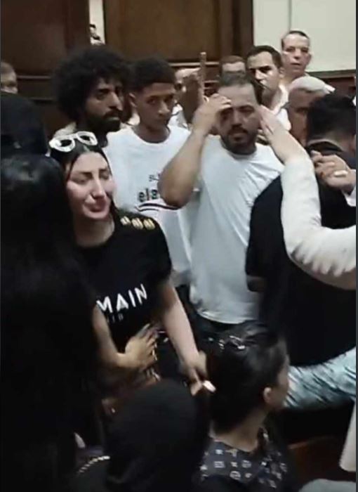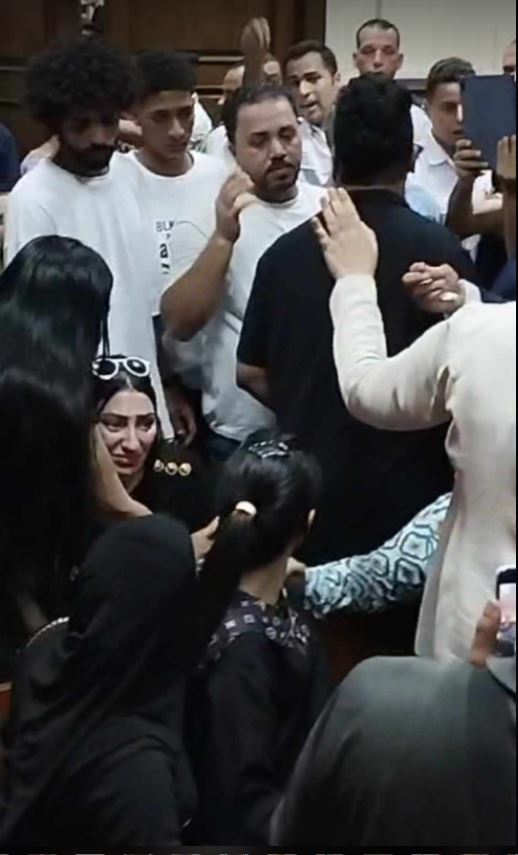 حيث ظهر مطرب المهرجانات عصام صاصا مبتسمًا بعد قرار هيئة المحكمة، وبجانبه زوجته التي كانت تختفي من عدسات الصحفيين، وتناهر وتردد اطمن مش هسيبك.