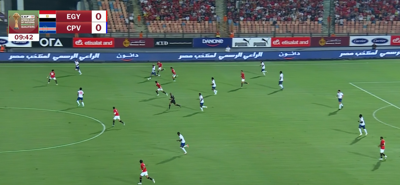 بدأت المباراة بين منتخب مصر وكاب فيردي، بسيطرة كبيرة من جانب لاعبي المنتخب الوطني، من أجل تسجيل الهدف الأول في المباراة مبكرا، وسط حالة من التراجع الدفاعي لمنتخب كاب فيردي، مع الاعتماد على الهجمات المرتدة.