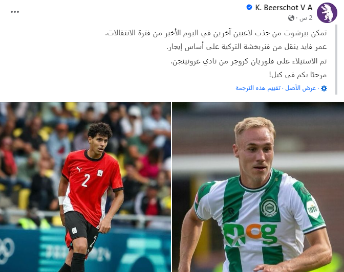 حيث أتم نادي بيرتشوت البلجيكي، صفقة التعاقد مع المدافع المصري عمر فايد، قادما من صفوف نادي فنربخشة التركي، لمدة موسم مواحد على سبيل الإعارة، وكان اللاعب قد تم إعارته الموسم الماضي إلى نادي نوفي بازار الصربي، غلى جانب التعاقد مع فلوريان كروجر من نادي جرونينجن.