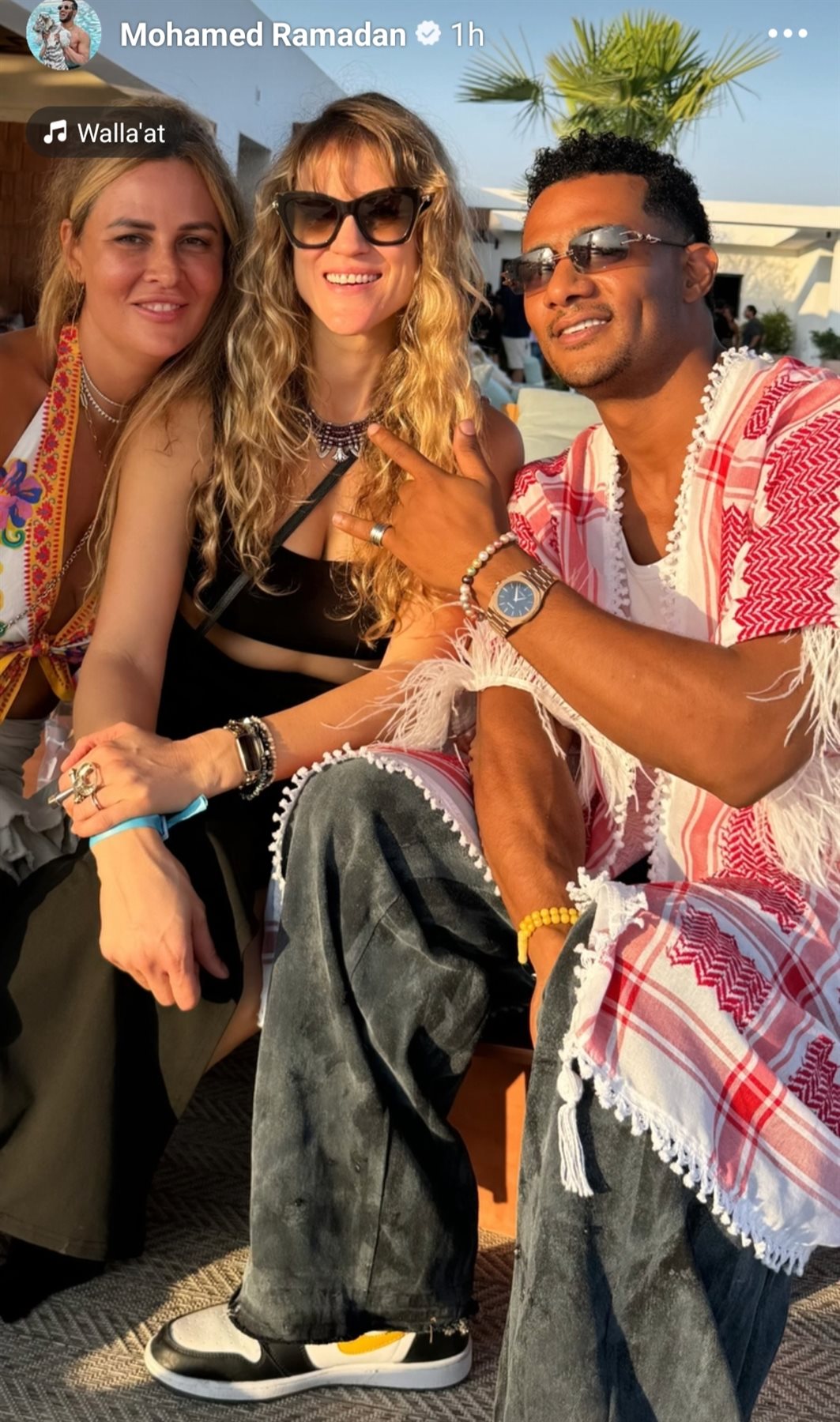 شارك النجم محمد رمضان صورة له عبر حسابه الرسمي على موقع تبادل الصور والفيديوهات انستجرام عبر خاصية القصص القصيرة وهو يرتدي الشال الفلسطيني ورفقة فتاتين، وتداول رواد مواقع التواصل الاجتماعي الصورة التي نالت إعجاب البعض وأثارت الجدل بين الآخرين، ويأتي ظهور محمد رمضان بالشال الفلسطيني بعد الضجة الواسعة التي أحدثها بسبب تقديمه إعلان كوكاكولا الذي يدعم الاحتلال الصهيوني وهو ما تسبب في ضجة واسعة.
