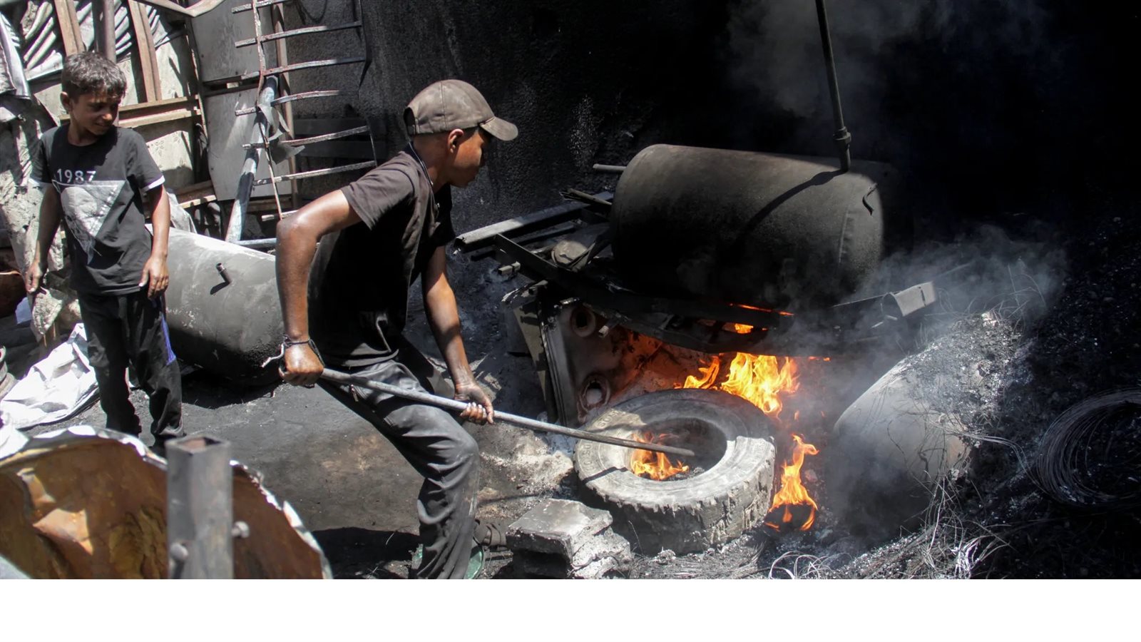 في مواجهة النقص الحاد في الوقود التقليدي، يقوم سكان شمال قطاع غزة، وخاصة الشباب منهم، بجمع المخلفات البلاستيكية من بين الأنقاض والمباني المدمرة في المناطق التي تعرضت للقصف، وتحويلها إلى وقود. من بين هؤلاء، الشاب مصطفى مصلح، البالغ من العمر 16 عامًا، الذي يمضي 13 ساعة يوميًا في جمع البلاستيك من المواقع المتضررة.