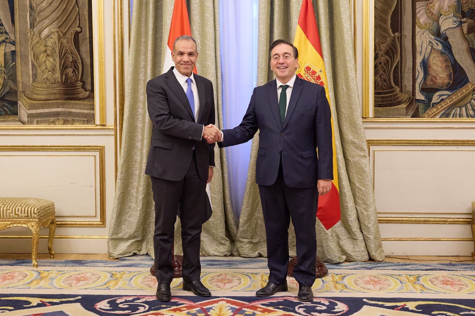 وأضاف السفير خلاف أن وزير الخارجية أشاد بالعلاقات المتميزة بين البلدين على المستويات السياسية والاقتصادية، وأكد على أهمية تعزيز التبادل التجاري وزيادة الاستثمارات الإسبانية المُباشرة إلى مصر، والاستفادة من الفرص المتاحة في مختلف القطاعات الاقتصادية في مصر ومنها البنية التحتية، والنقل، والمياه، والطاقة المُتجددة والخضراء، والربط الكهربائي.