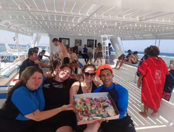 احتفل السياح الأجانب في الغردقة بالمولد النبوي الشريف، أثناء توزيع الحلوى عليهم خلال رحلات بحرية في محافظة البحر الاحمر.