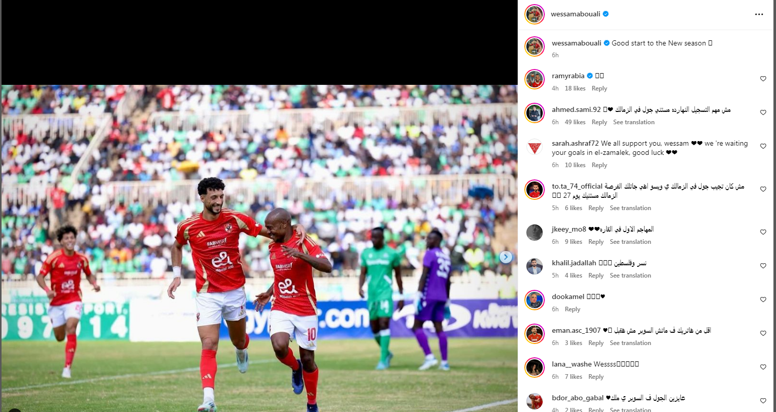 تحيا مصر، ونشر وسام أبو على عبر حسابه الرسمي"إنستجرام"، بعض الصور للفريق، معلقاً:" بداية موفقة للموسم الجديد".