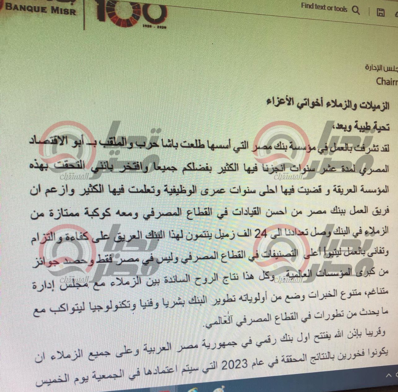 تاكيدا لـ تحيا مصر.. "الإتربي" يودع العاملين ببنك مصر برسالة مؤثرة.. صور
