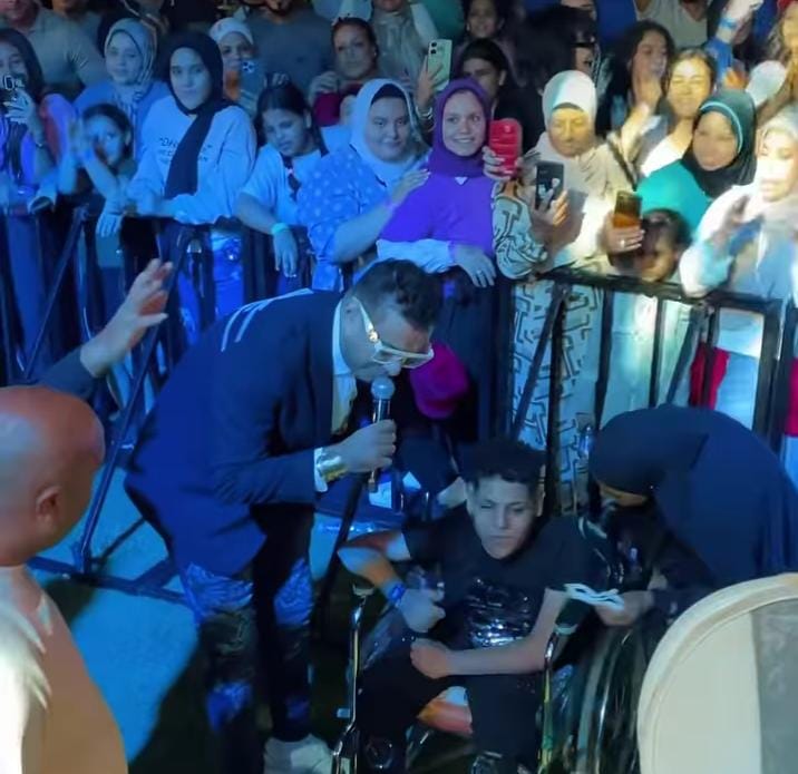 جبر الخواطر.. محمود الليثي يلتقط صور مع اطفال من ذوي الهمم