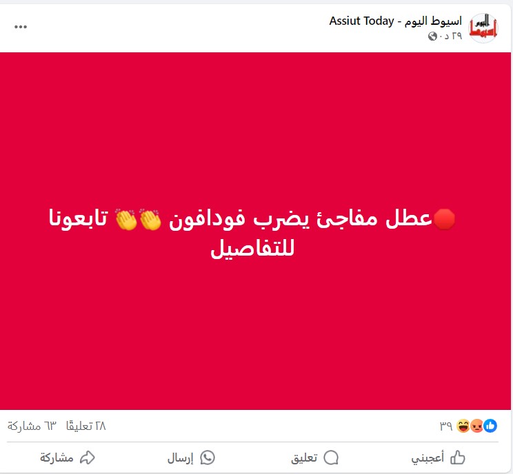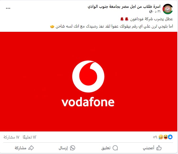 تداول نشطاء على مواقع التواصل الاجتماعي أنباء عن وجود عطل في شبكة فودافون، ونفاذ مفاجئ في رصيد عملاء الشركة، وعدم تمكنهم من إجراءات مكالمات هاتفية وبعض الخدمات الأخرى.