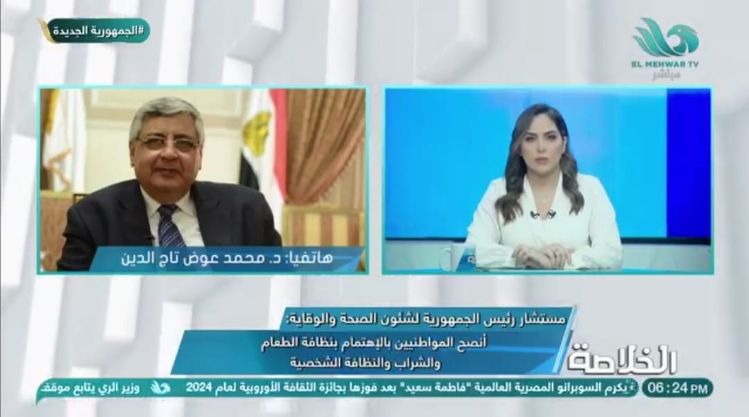 ووجه الدكتور عوض تاج الدين، عدة نصائح للمواطنين وهي الاهتمام بنظافة الطعام والشراب وايضا الاهتمام بالنظافة الشخصية، مؤكدا أن الدولة تضع معايير لسلامة المياه الغذاء.