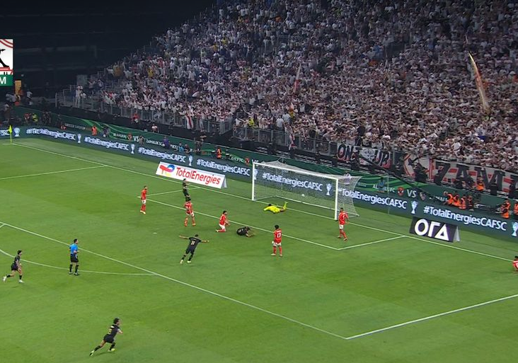 وسجل وسام أبو علي الهدف الأول للنادي الأهلي في الدقيقة 42 من عمر المباراة وسدد الكرة في منتصف مرمى محمد عواد حارس الزمالك، حصل أكرم توفيق لاعب النادي الأهلي على ركلة الجزاء بعد تدخل قوي من حمزة المثلوثي لاعب نادي الزمالك.