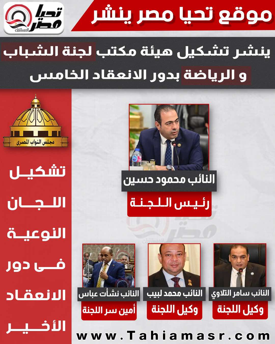 بعد الإطاحة بحازم إمام.. تحيا مصر ينشر تشكيل هيئة مكتب لجنة الرياضة بدور الانعقاد الخامس