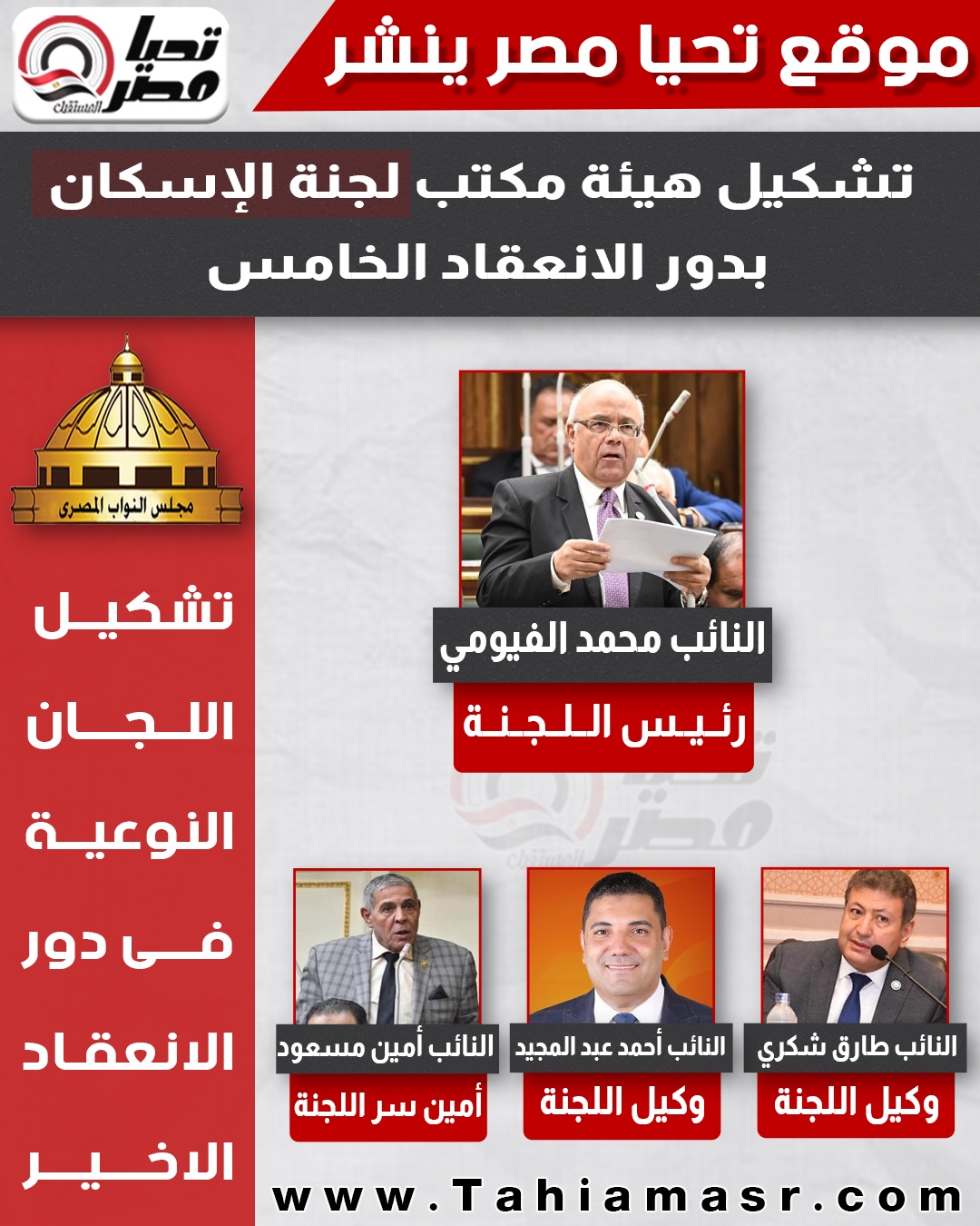 الفيومي رئيسا.. تحيا مصر ينشر تشكيل هيئة مكتب لجنة الإسكان بدور الانعقاد الخامس