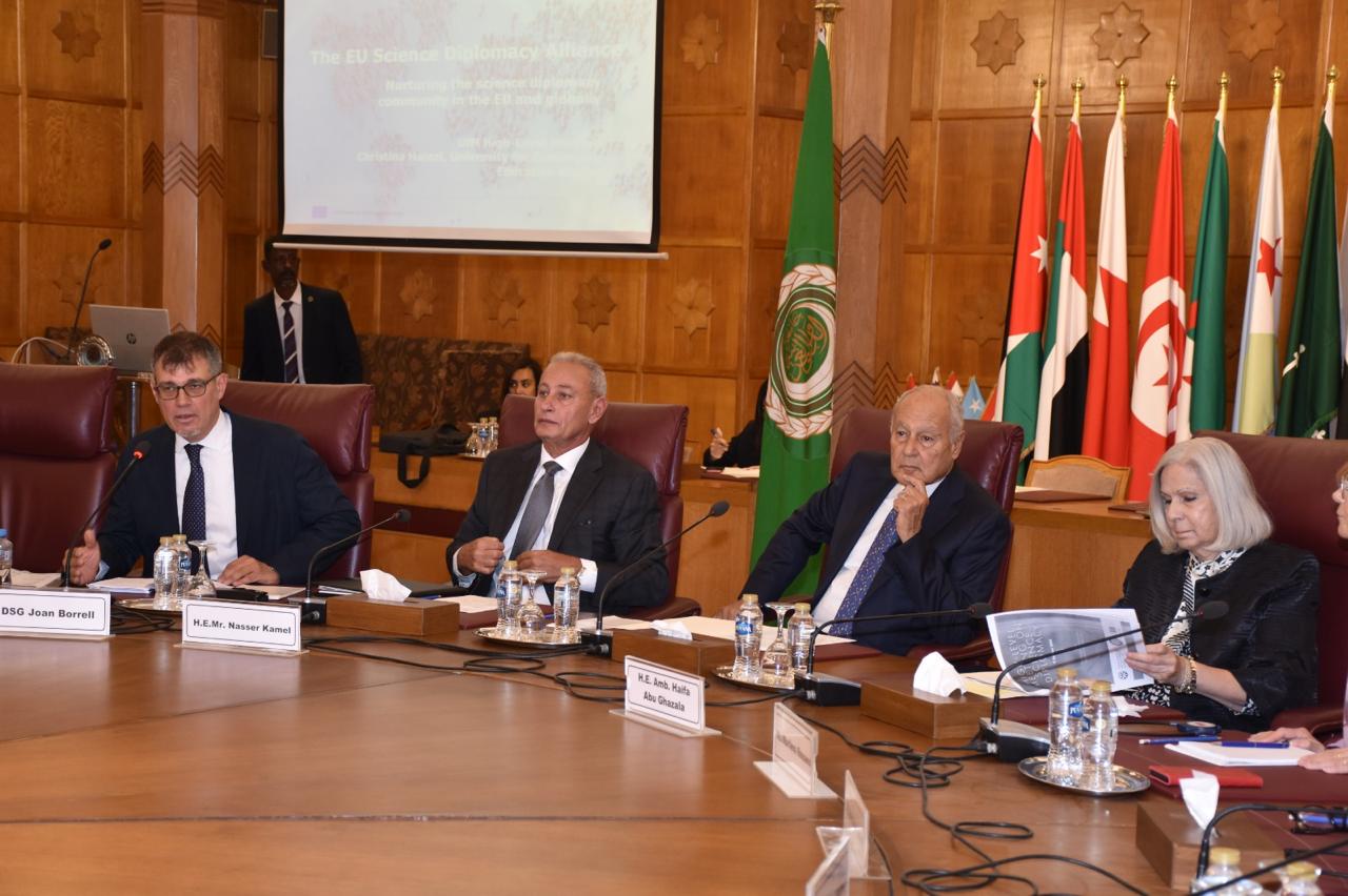 أكد أحمد أبو الغيط الأمين العام لجامعة الدول العربية، على أهمية توطيد العلاقات مع الدول الأورومتوسطية لاسيما في المجالات العلمية والدبلوماسية، وجاء ذلك خلال الجلسة الافتتاحية للمؤتمر الدولي رفيع المستوى حول الدبلوماسية العلمية، بحضورالدكتور محمد ايمن عاشور وزير التعليم العالي والبحث العلمي بجمهورية مصر العربية، ناصر كامل الأمين العام للاتحاد من أجل المتوسط، سيجني راتسو نائب المدير العام للبحوث والابتكار بالمفوضية الأوروبية، ومديري المنظمات العربية والاقليمية ورؤساء الجامعات العربية