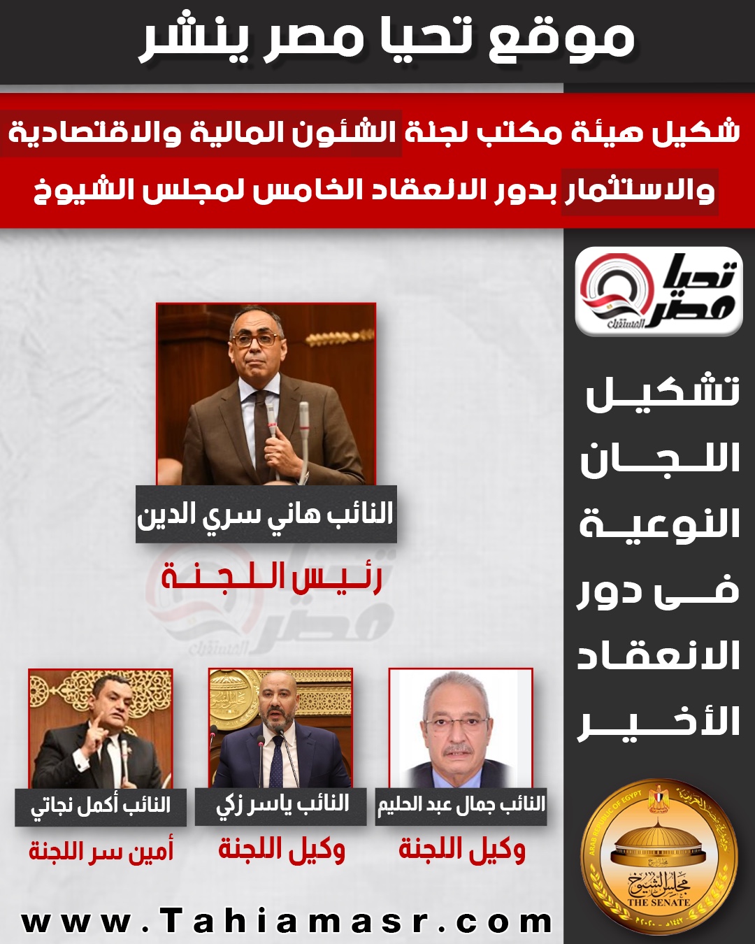 هاني سري الدين رئيسا..تحيا مصر ينشر تشكيل هيئة مكتب اللجنة الاقتصادية بدور الانعقاد الخامس