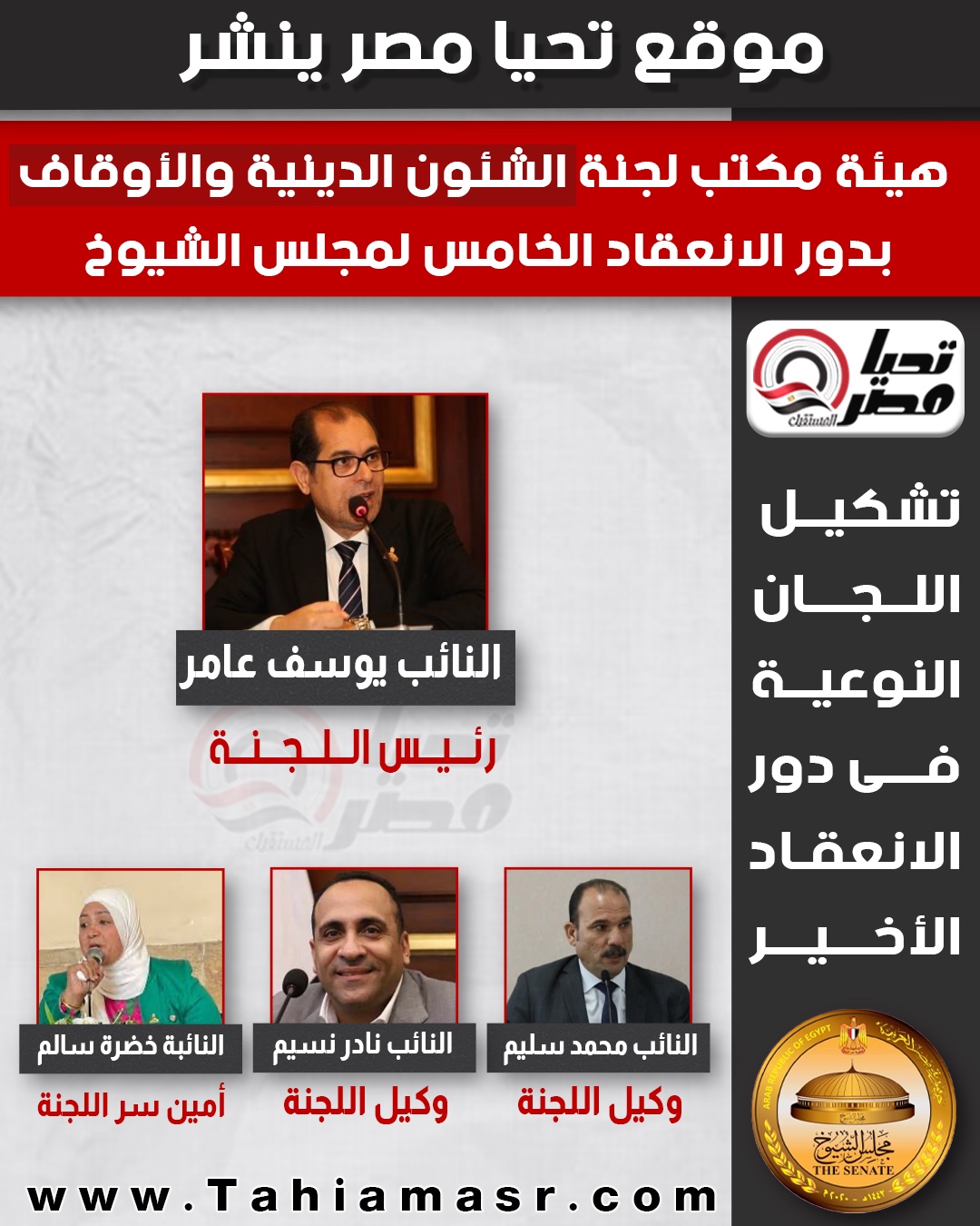 يوسف السيد رئيسا.. تحيا مصر ينشر تشكيل هيئة مكتب اللجنة الدينية بدور الانعقاد الخامس