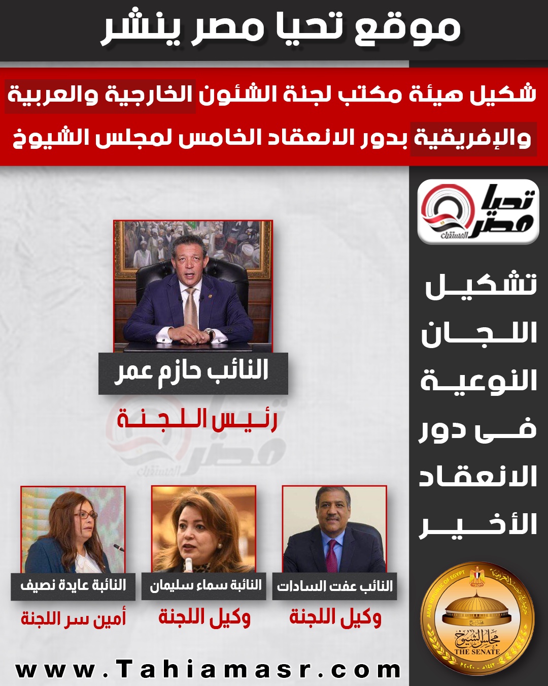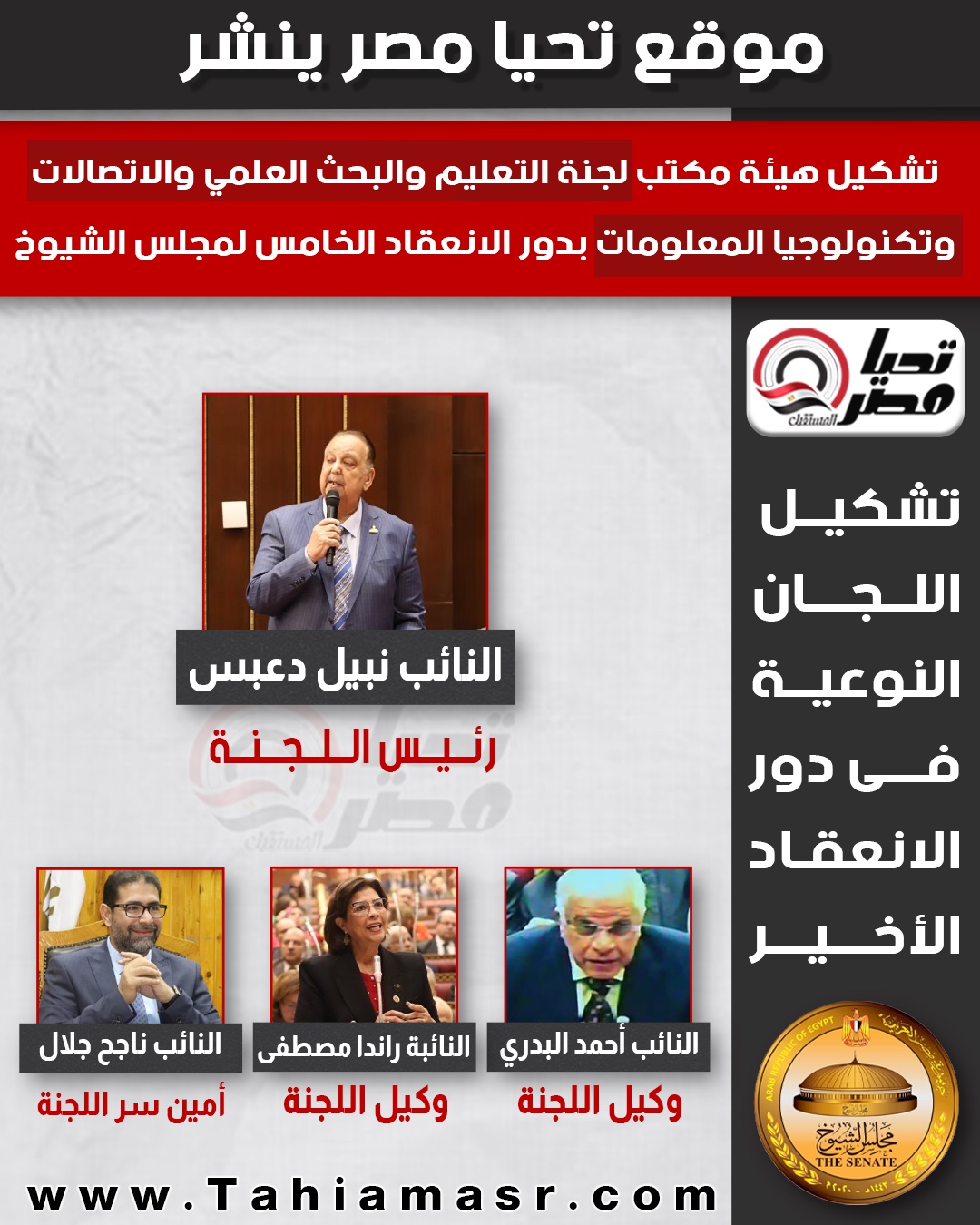 - نتيجة انتخابات لجان الشيوخ بدور الانعقاد الخامس