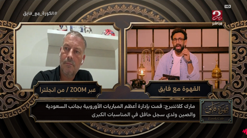 وزاد مارك كلاتينبيرج، قمت بتحكيم أفضل المباريات الكبرى في العديد من البطولات وتواجدت في السعودية واليونان ولدي سجل حافل في هذه المباريات، ولدي برنامج خاص بتحليل الحالات التحكيمية، ولدي من الخبرة التحكيمية للتعاون وتم اعتمادي من الفيفا.