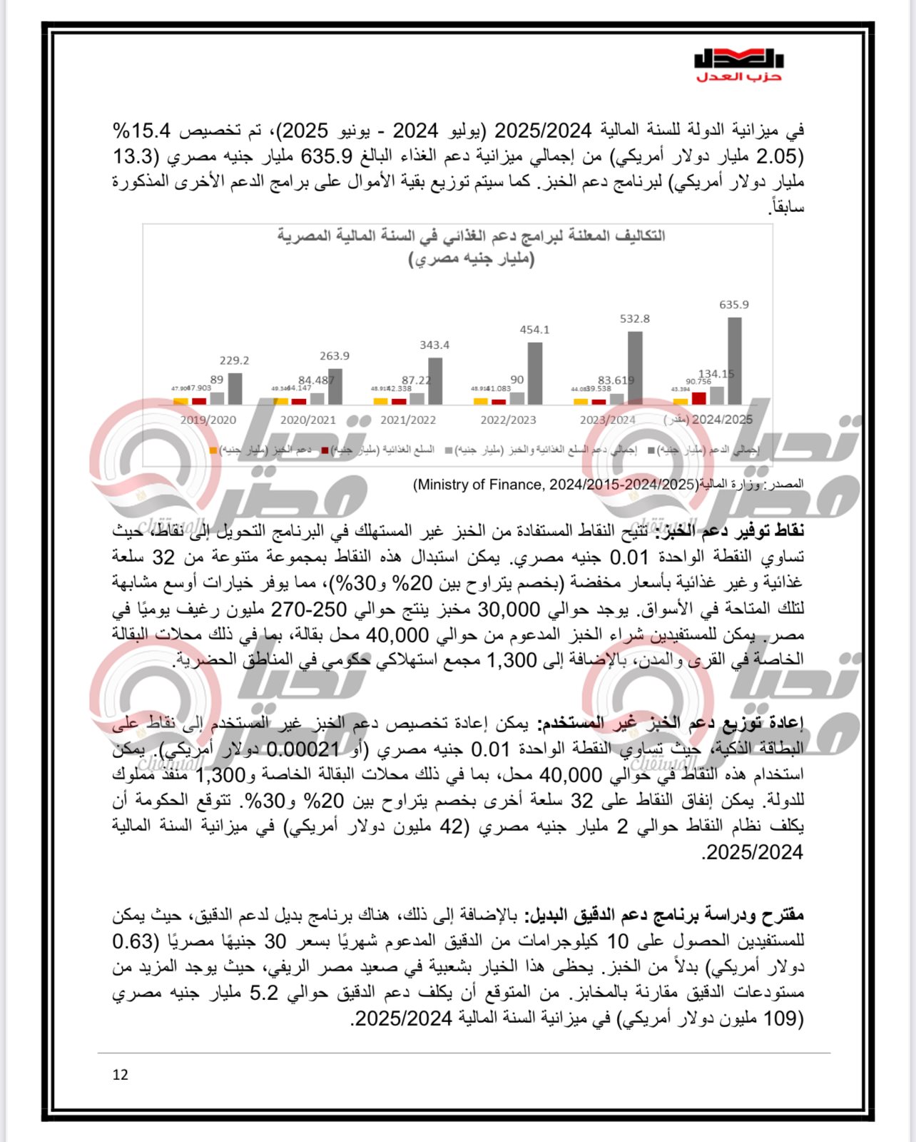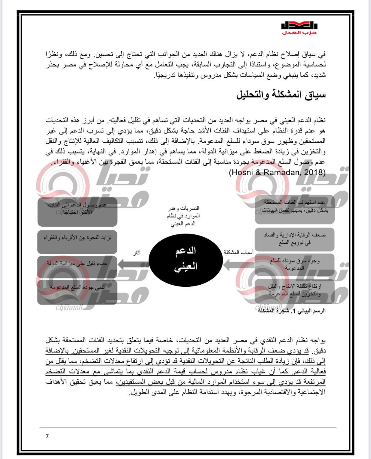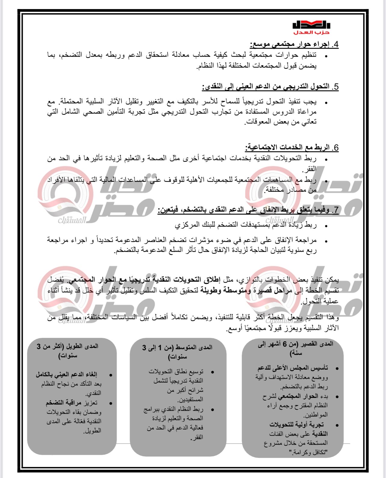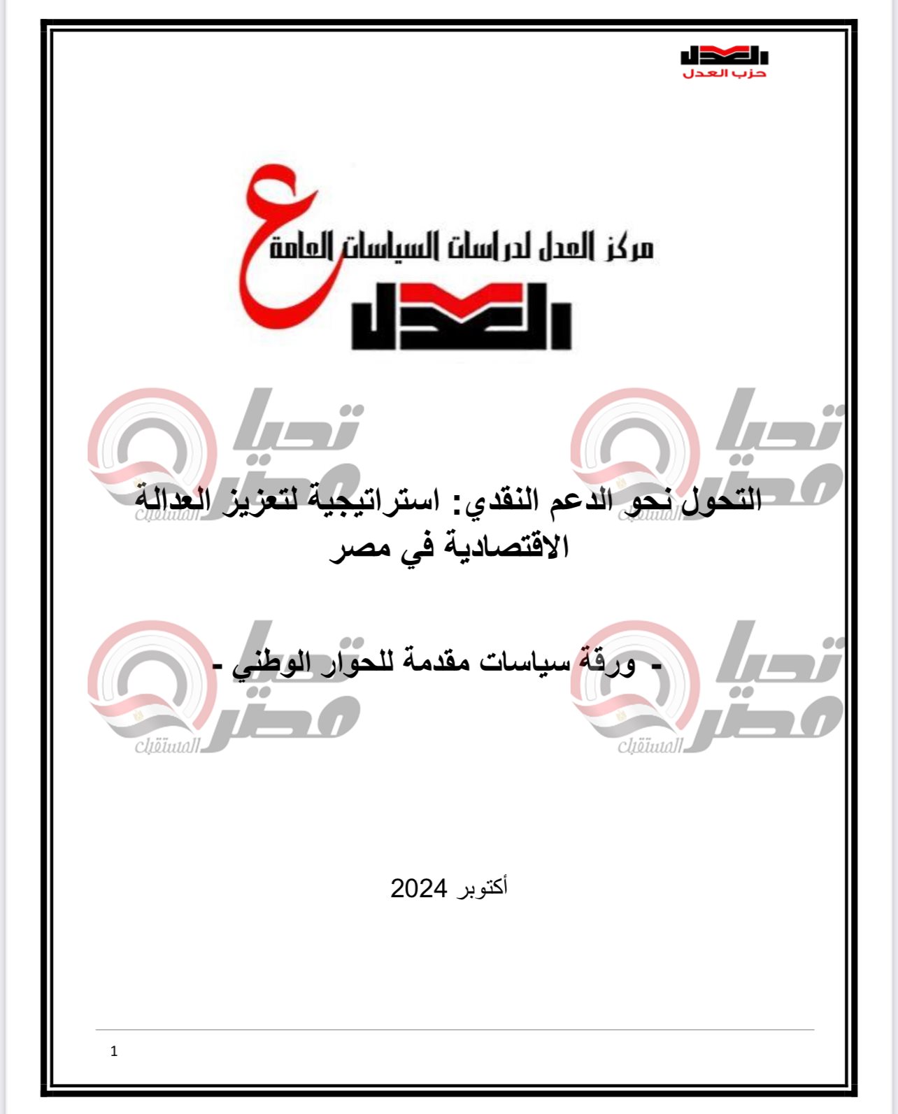 وكان الدكتور محمد فؤاد رئيس مركز العدل لدراسات السياسات العامة والخبير الاقتصادي وعضو المكتب السياسي لحزب العدل ، قال في وقت سابق إن حزب العدل يجهز ورقة بحثية متكاملة لتقديمها للحوار الوطني حول تحويل الدعم من عيني الى نقدي .