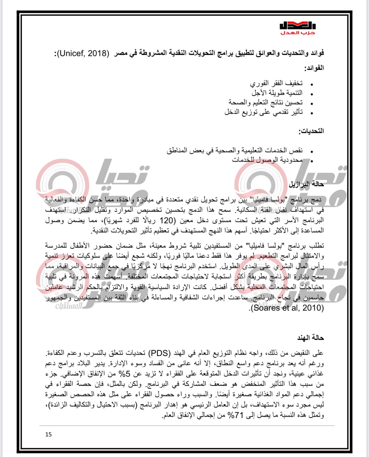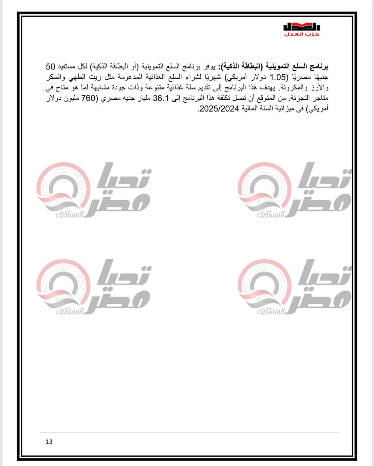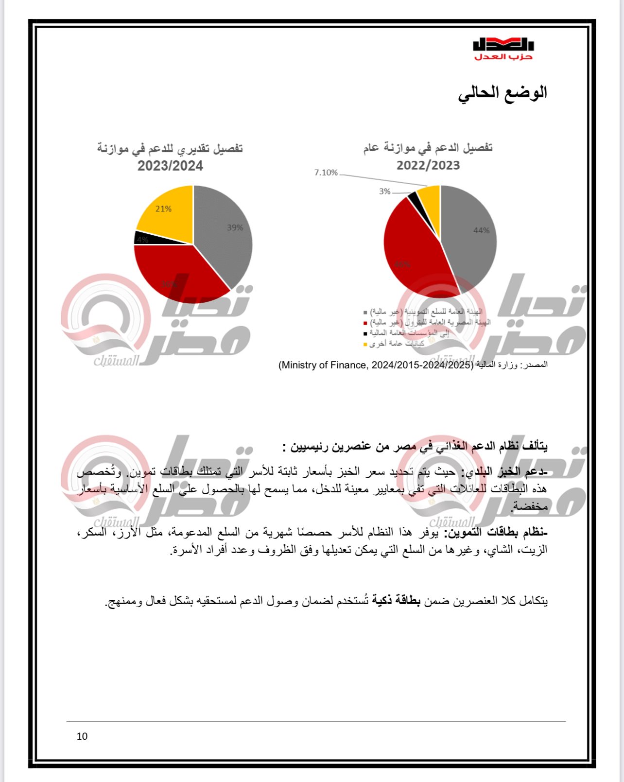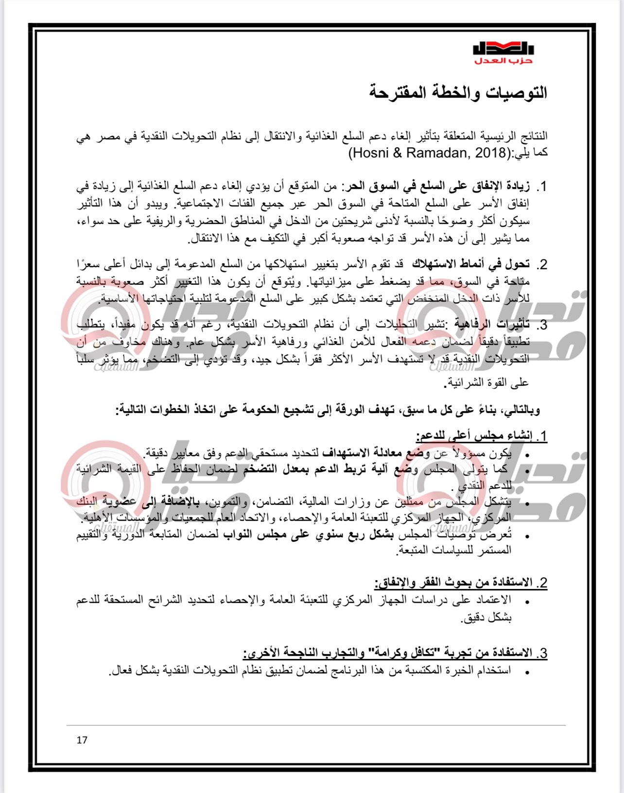 وكان الدكتور محمد فؤاد رئيس مركز العدل لدراسات السياسات العامة والخبير الاقتصادي وعضو المكتب السياسي لحزب العدل ، قال في وقت سابق إن حزب العدل يجهز ورقة بحثية متكاملة لتقديمها للحوار الوطني حول تحويل الدعم من عيني الى نقدي .