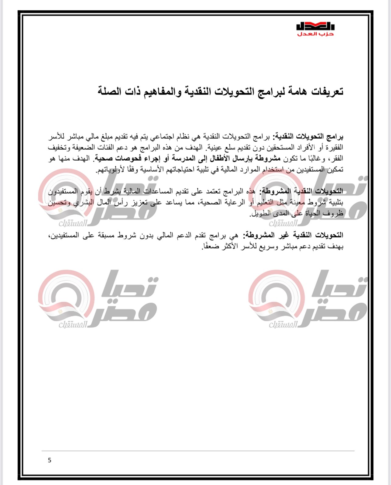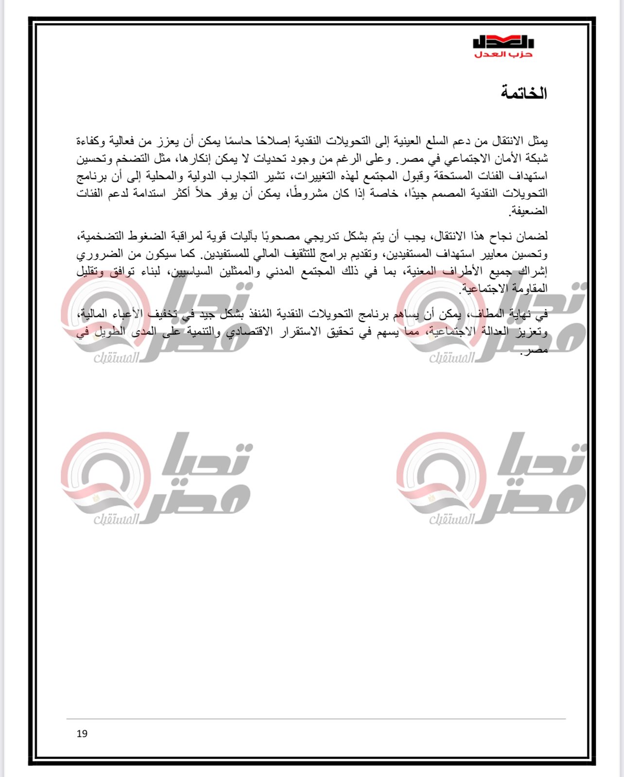 خاص تحيا مصر.. ننشر مسودة مقترحات «العدل» المقدمة للحوار الوطني حول التحول للدعم النقدي