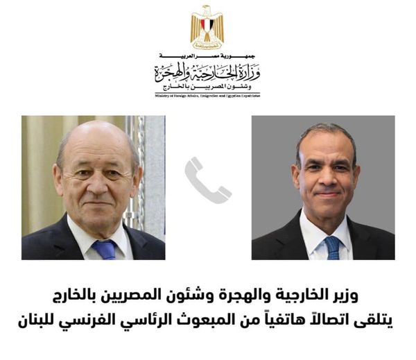 وزير الخارجية لنظيره الفرنسي: نؤكد على رفض مصر الكامل لأي مساس بسيادة لبنان