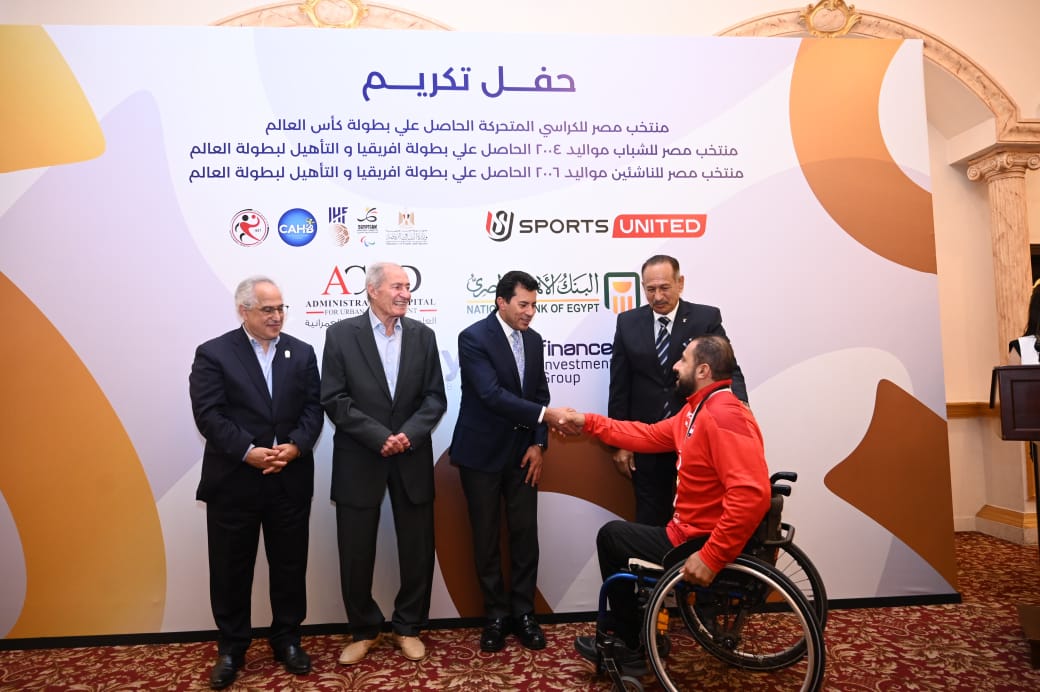 صبحي ومصطفى والأمين يشهدان حفل تكريم أبطال العالم لبطولة اليد للكراسي المتحركة ومنتخبا الشباب والناشئين