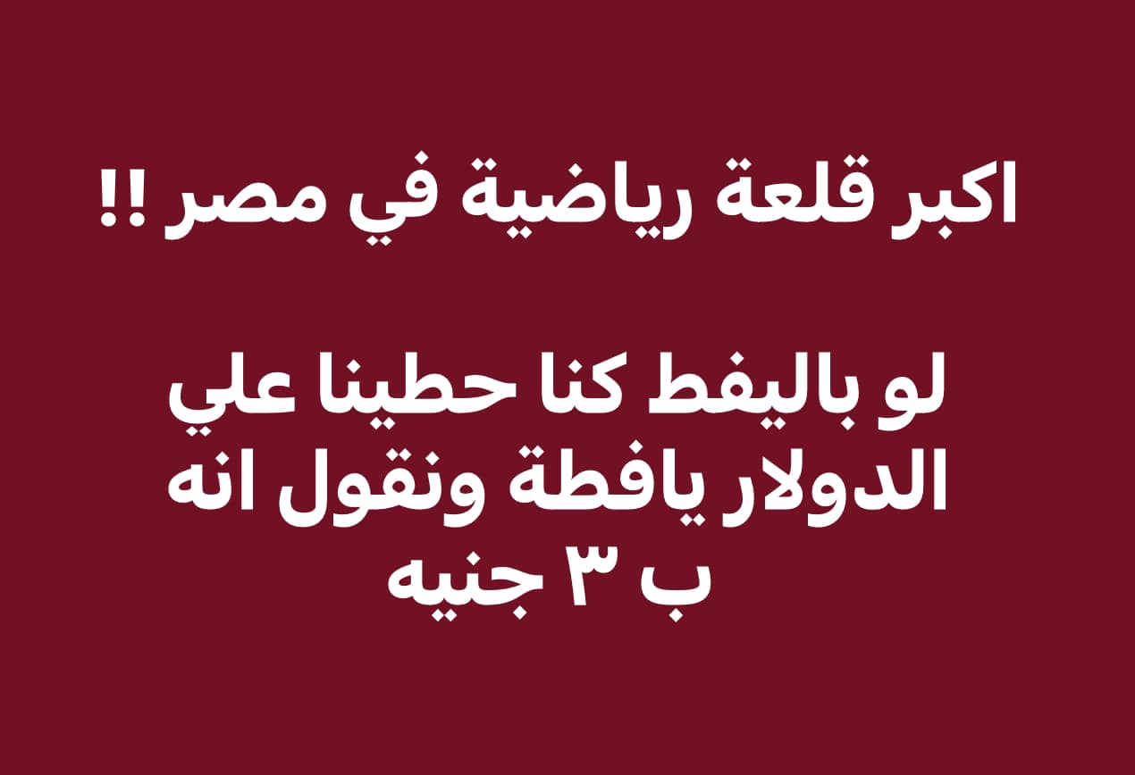 وقال أبو بكر في منشور له عبر صفحته الشخصية على موقع التواصل الاجتماعي فيس بوك: «اكبر قلعة رياضية في مصر!! لو باليفط كنا حطينا على الدولار يافطة ونقول إنه ب 3 جنيه».