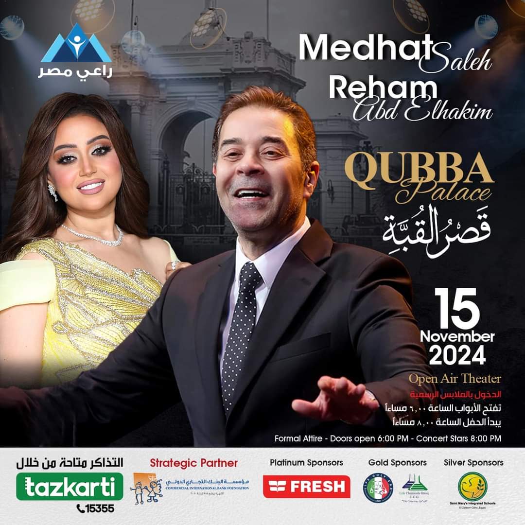 وأعلنت شركة تذكرتي عن تفاصيل الحفل من خلال منشور عبر حسابها الشخصي على موقع التواصل الاجتماعي فيسبوك رصده موقع تحيا مصر، وكنبت فيه: حفل خيري لدعم فقراء مصر بالحديقة الملكية بقصر القبة الرئاسي ويحي الحفل الفنان مدحت صالح والفنانة ريهام عبد الحكيم يتغنى فيها الفنان مدحت صالح والفنانة ريهام عبد الحكيم بأجمل الاغاني بمصاحبة الأوركسترا المصاحبة لهما.