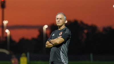 مارسيل كولر، المدير الفني للفريق الأول لكرة القدم، ومحمد الشناوي، كابتن الفريق، يحضران المؤتمر الصحفي لمواجهة سيراميكا كليوباترا التي تجمع الفريقين مساء الأحد في إطار منافسات نصف نهائي كأس السوبر المصري.