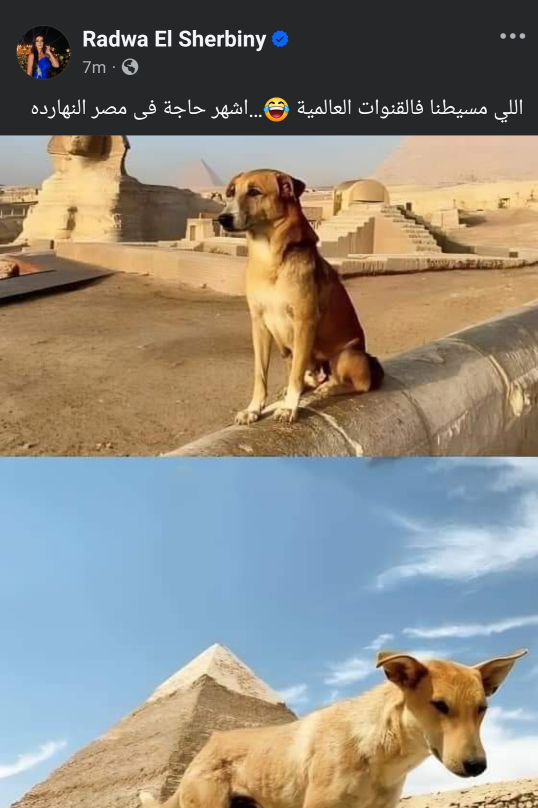 شاركت الإعلامية رضوى الشربيني منشور عبر حسابها الرسمي على موقع التواصل الاجتماعي فيسبوك علقت من خلاله على قصة الكلب المصري بوكا والانتشار الواسع الذي أحدثه الساعات الماضية وتصدره التريند عبر منصات التواصل الاجتماعي، وأعربت رضوى الشربيني عن سعادتها بهذا الكلب خاصةً وأنه مصري والدعايا التي تمت بفضله للسياحة المصرية، وكتبت رضوى الشربيني: “اللي مسيطنا على القنوات العالمية.. أشهر حاجة في مصر دلوقتي”، وعلق عدد كبير من متابعين رضوى الشربيني على منشورها عبر فيسبوك.