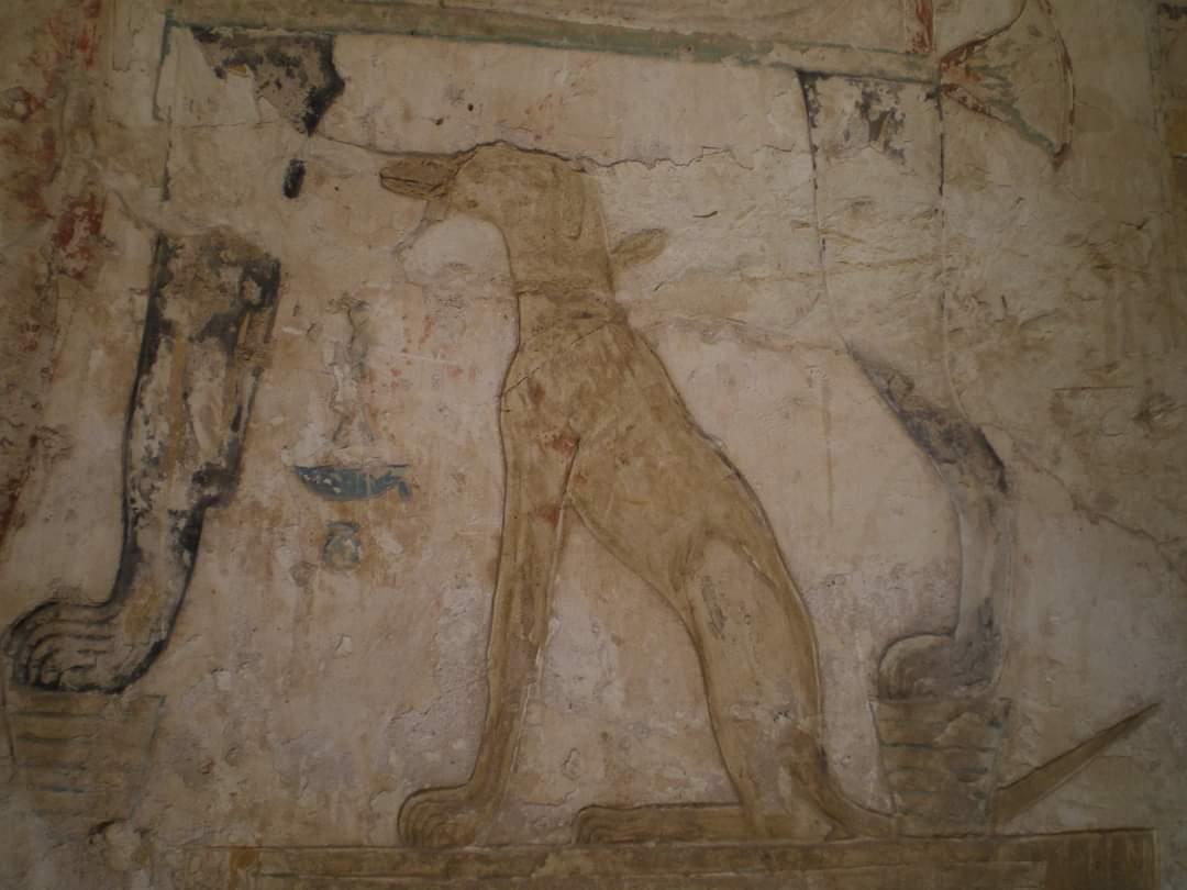 وكانت الكلاب محبوبة في مصر القديمة ولها بعد دينى لارتباطها بالمعبود أنوبيس إله الموت والتحنيط والحياة الآخرة، وعادةً ما يتم تصويره على شكل كلب أو رجل برأس ناب، وأنوبيس معبود مصرى قديم على شكل ابن اوى اعتبر رمز للإقليم 17 من اقاليم الصعيد ثم أصبح حارس للجبانة و مشرف على تحنيط الموتى مركز عبادته كان قرية القيس بين البهنسا و بنى مزار.