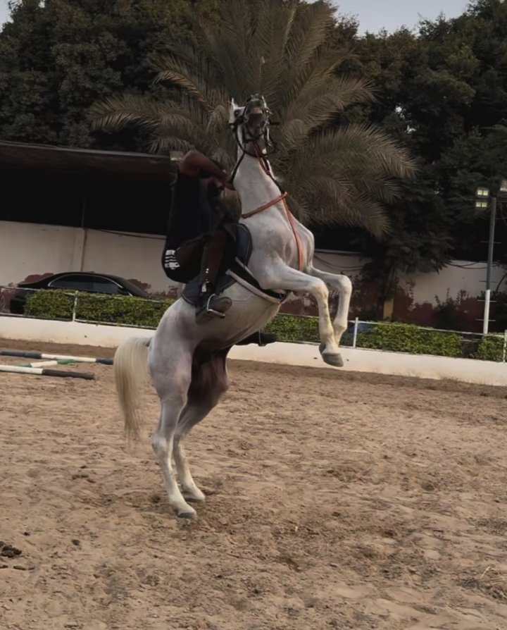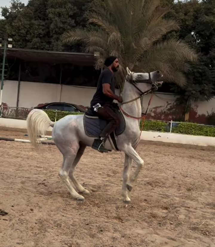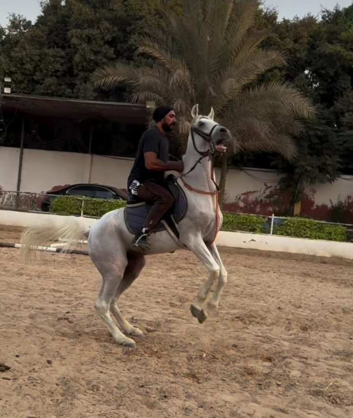 وظهر أحمد العوضي في الفيديو الذي رصده موقع تحيا مصر عبر حسابه الرسمي بموقع تبادل الصور والفيديوهات انستجرام، وهو راكبا على حصان ويقوم بالتدريب عليه وعلق عليه، قائلا: حصاني هو دلال المنايا.. فهد البطل حضر.