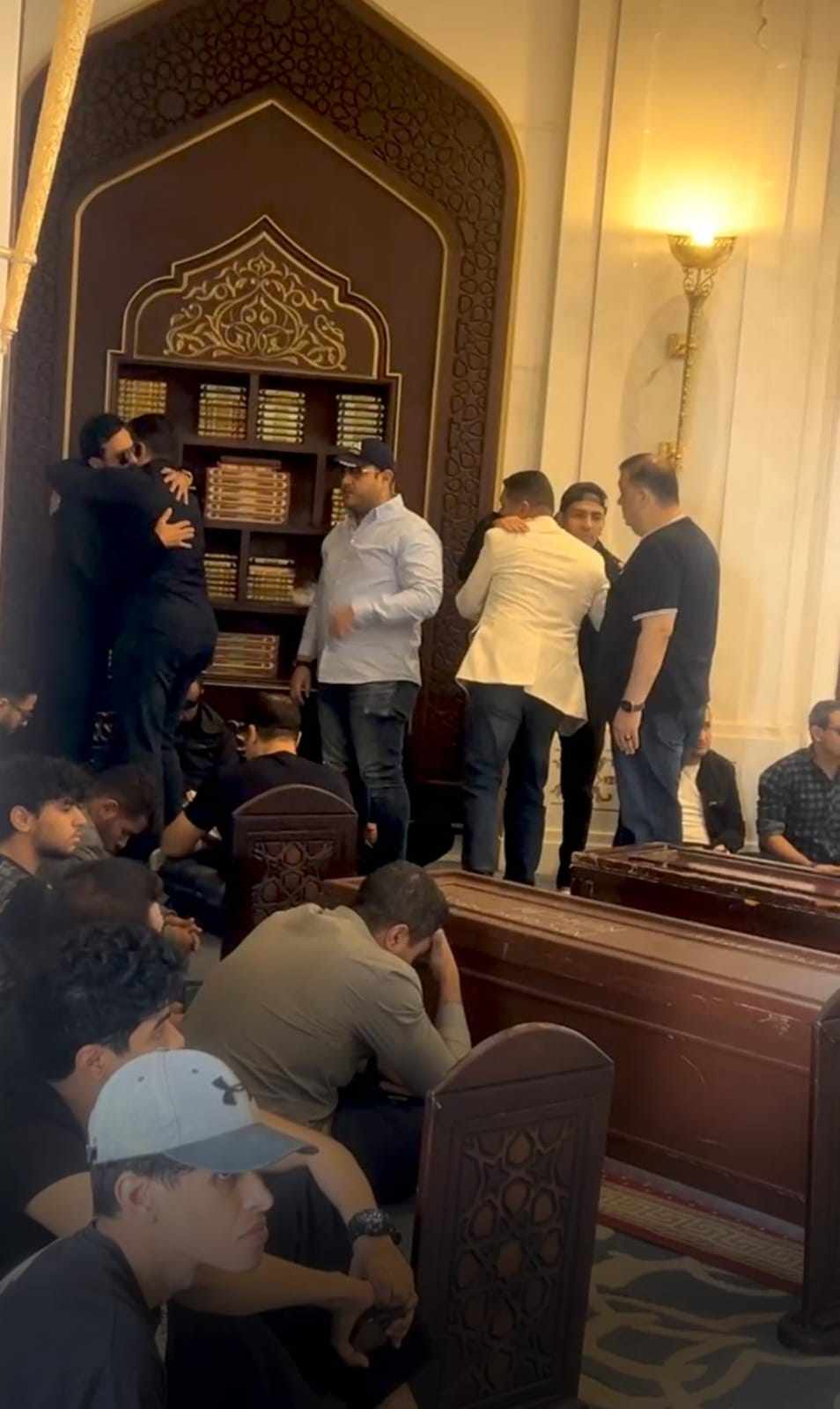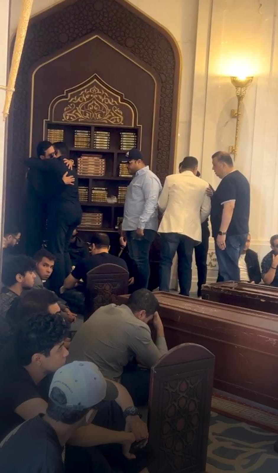 يبكي في أحضان حمادة هلال.. لحظة وصول جثمان والدة الفنان أحمد عصام لأداء صلاة الجنازة