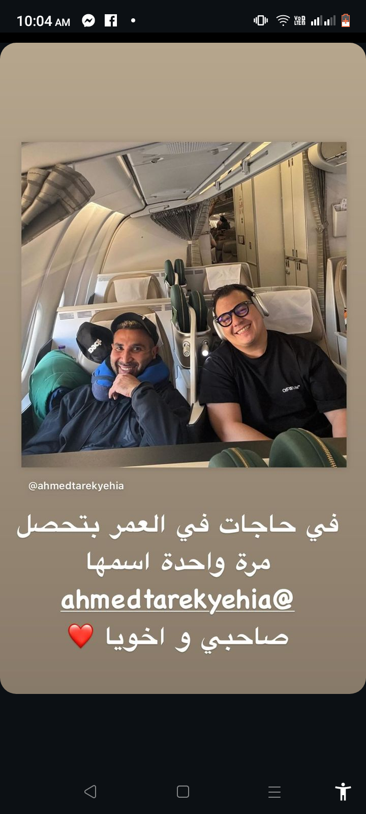شارك المطرب أحمد سعد جمهوره ومحبيه، صورة له رفقة الملحن الشهير أحمد طارق يحيي، حيث تواجد الثنائي على متن طائرة، موجها رسالة خاصة لصديق عمره والذي يبدوا أنه أول من كان بجانبه في محنته المرضية الأخيرة.
