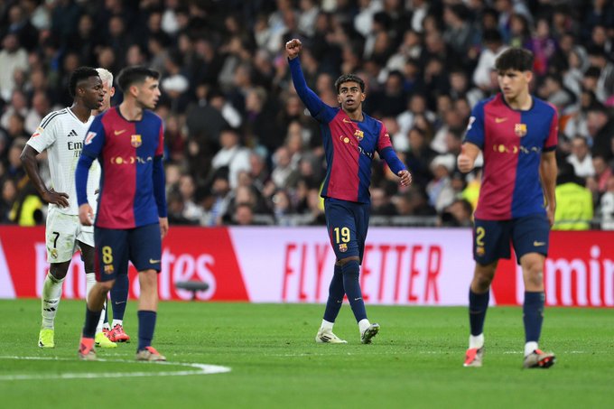 وفي الدقيقة 77 سجل لامين يامال الهدف الثالث لفريق برشلونة بطريقة رائعة ولم يتمكن لونين حارس ريال مدريد في التعامل مع الكرة.