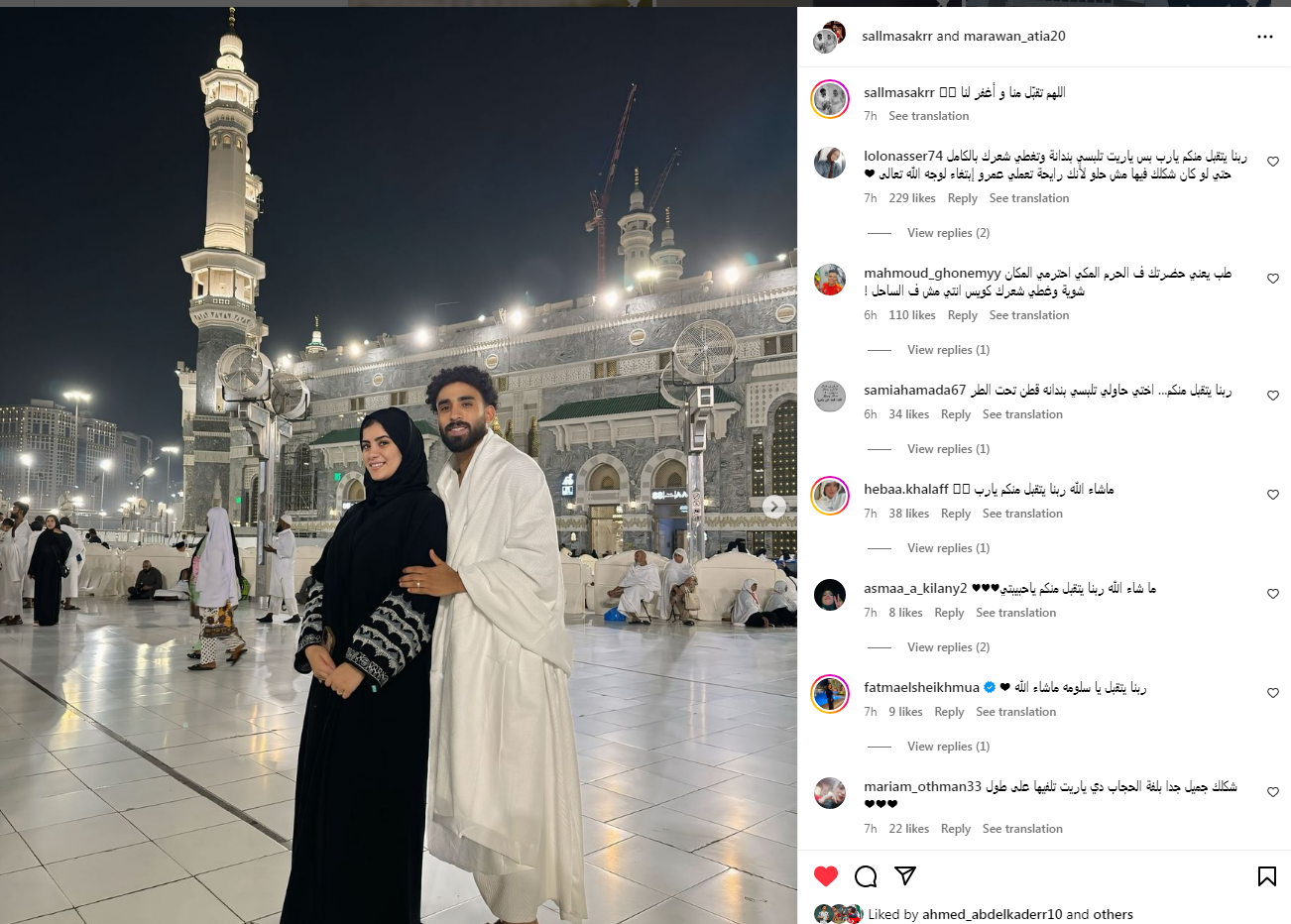 حرص مروان عطية لاعب الفريق الأول لكرة القدم بالنادي الأهلي، على أداء ماسك العمرة بالسعودية برفقة وزوجته ، قبل العودة للمشاركة في التدريبات الجماعية مع الشياطين الحمر.
