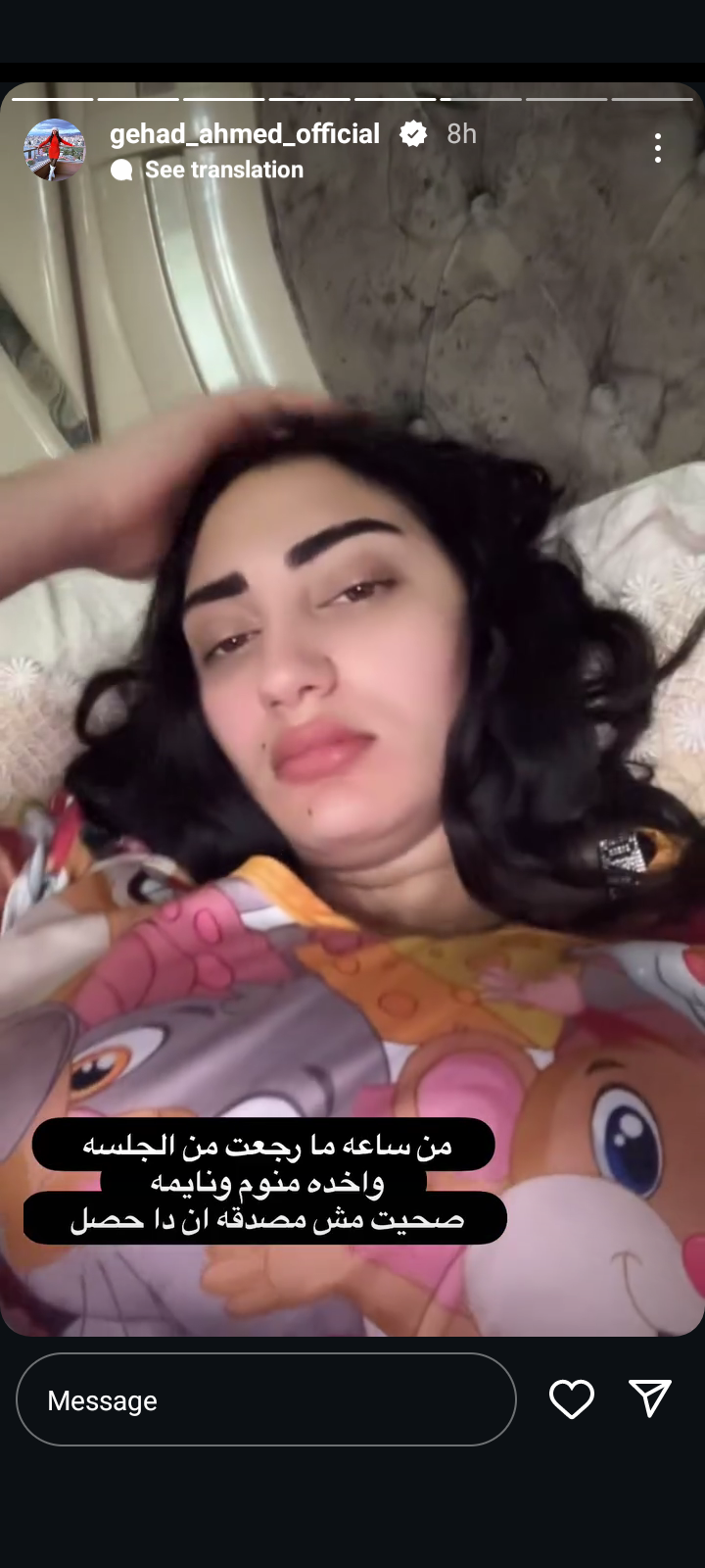 وشاركت زوجة عصام صاصا فيديوهات وصور لها لحظة استيقظاها من النوم في نص الليل، وعلقت عليها في منشور رصده موقع تحيا مصر: من ساعة ما رجعت من الجلسة واخدة منوم ونايمة، صحيت مش مصدقة أن ده حصل.