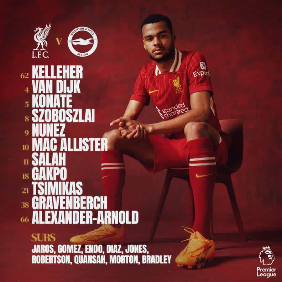 تشكيل ليفربول الرسمي ضد برايتون في الدوري الإنجليزي الممتاز